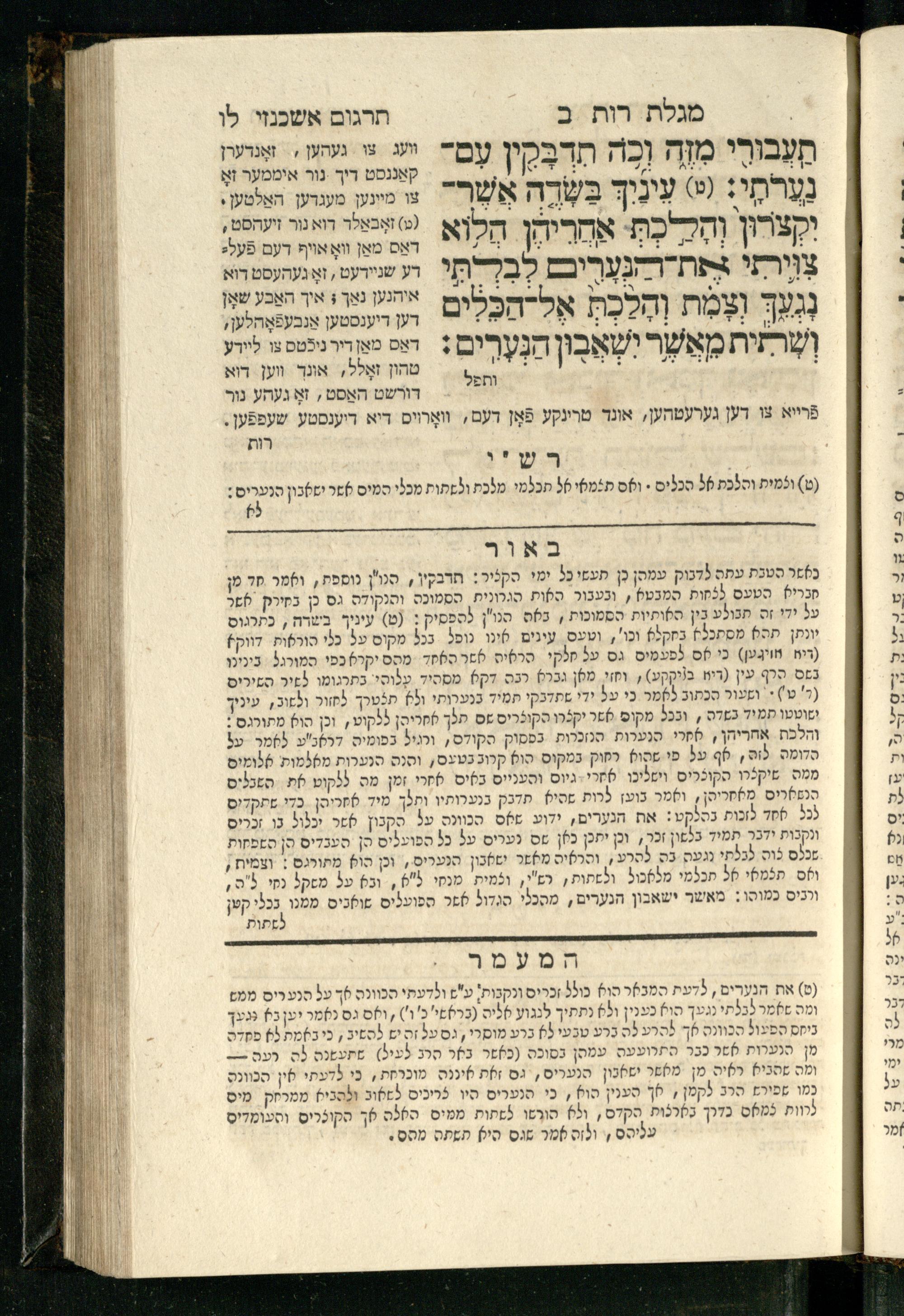 20 (1833) Ḥamesh megilot : ʿim Perush Rashi targum Ashkenazi u-veʾur : hugah bi-sheḳidah rabah u-ve-ʿiyun gadol ṿe-nosaf mavo ha-sheni ʿal megilat Rut, Ekhah, Ḳohelet, ṿe-Ester ; ṿe-ha-meʿamer ʿal kol megilah u-megilah / me-et ha-ḥakham ha-medaḳdeḳ mo.h.r.R. Ṿolf Meʾir (moreh lashon ʿIvri be-vet ḥinukh ha-normali asher be-Prag) ; ṿa-ani ha-madpis hosafti gam targum u-veʾur ʿal milot be-laʿaz ha-nimtsaʾot be-Fe. Rashi z.l.20 (1833) חמש מגילות : עם פירוש רש״י תרגום אשכנזי ובאור : הוגה בשקידה רבה ובעיון גדול ונוסף מבוא השני על מגילת רות, איכה, קהלת, ואסתר; והמעמר על כל מגלה ומגלה / מאת החכם המדקדק מוהר״ר וואלף מאיר (מורה לשון עברי בבית חנוך הנארמאלי אשר בפראג) ; ואני המדפיס הוספתי גם תרגום ובאור על מלות בלע"ז הנמצאות בפירוש״י ז״ל