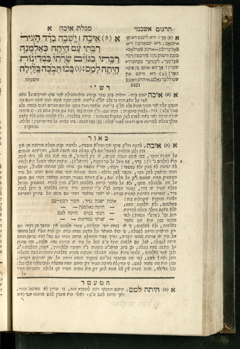 20 (1833) Ḥamesh megilot : ʿim Perush Rashi targum Ashkenazi u-veʾur : hugah bi-sheḳidah rabah u-ve-ʿiyun gadol ṿe-nosaf mavo ha-sheni ʿal megilat Rut, Ekhah, Ḳohelet, ṿe-Ester ; ṿe-ha-meʿamer ʿal kol megilah u-megilah / me-et ha-ḥakham ha-medaḳdeḳ mo.h.r.R. Ṿolf Meʾir (moreh lashon ʿIvri be-vet ḥinukh ha-normali asher be-Prag) ; ṿa-ani ha-madpis hosafti gam targum u-veʾur ʿal milot be-laʿaz ha-nimtsaʾot be-Fe. Rashi z.l.20 (1833) חמש מגילות : עם פירוש רש״י תרגום אשכנזי ובאור : הוגה בשקידה רבה ובעיון גדול ונוסף מבוא השני על מגילת רות, איכה, קהלת, ואסתר; והמעמר על כל מגלה ומגלה / מאת החכם המדקדק מוהר״ר וואלף מאיר (מורה לשון עברי בבית חנוך הנארמאלי אשר בפראג) ; ואני המדפיס הוספתי גם תרגום ובאור על מלות בלע"ז הנמצאות בפירוש״י ז״ל
