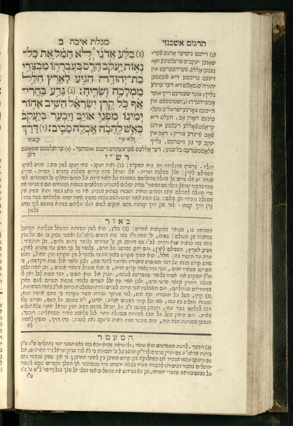 20 (1833) Ḥamesh megilot : ʿim Perush Rashi targum Ashkenazi u-veʾur : hugah bi-sheḳidah rabah u-ve-ʿiyun gadol ṿe-nosaf mavo ha-sheni ʿal megilat Rut, Ekhah, Ḳohelet, ṿe-Ester ; ṿe-ha-meʿamer ʿal kol megilah u-megilah / me-et ha-ḥakham ha-medaḳdeḳ mo.h.r.R. Ṿolf Meʾir (moreh lashon ʿIvri be-vet ḥinukh ha-normali asher be-Prag) ; ṿa-ani ha-madpis hosafti gam targum u-veʾur ʿal milot be-laʿaz ha-nimtsaʾot be-Fe. Rashi z.l.20 (1833) חמש מגילות : עם פירוש רש״י תרגום אשכנזי ובאור : הוגה בשקידה רבה ובעיון גדול ונוסף מבוא השני על מגילת רות, איכה, קהלת, ואסתר; והמעמר על כל מגלה ומגלה / מאת החכם המדקדק מוהר״ר וואלף מאיר (מורה לשון עברי בבית חנוך הנארמאלי אשר בפראג) ; ואני המדפיס הוספתי גם תרגום ובאור על מלות בלע"ז הנמצאות בפירוש״י ז״ל