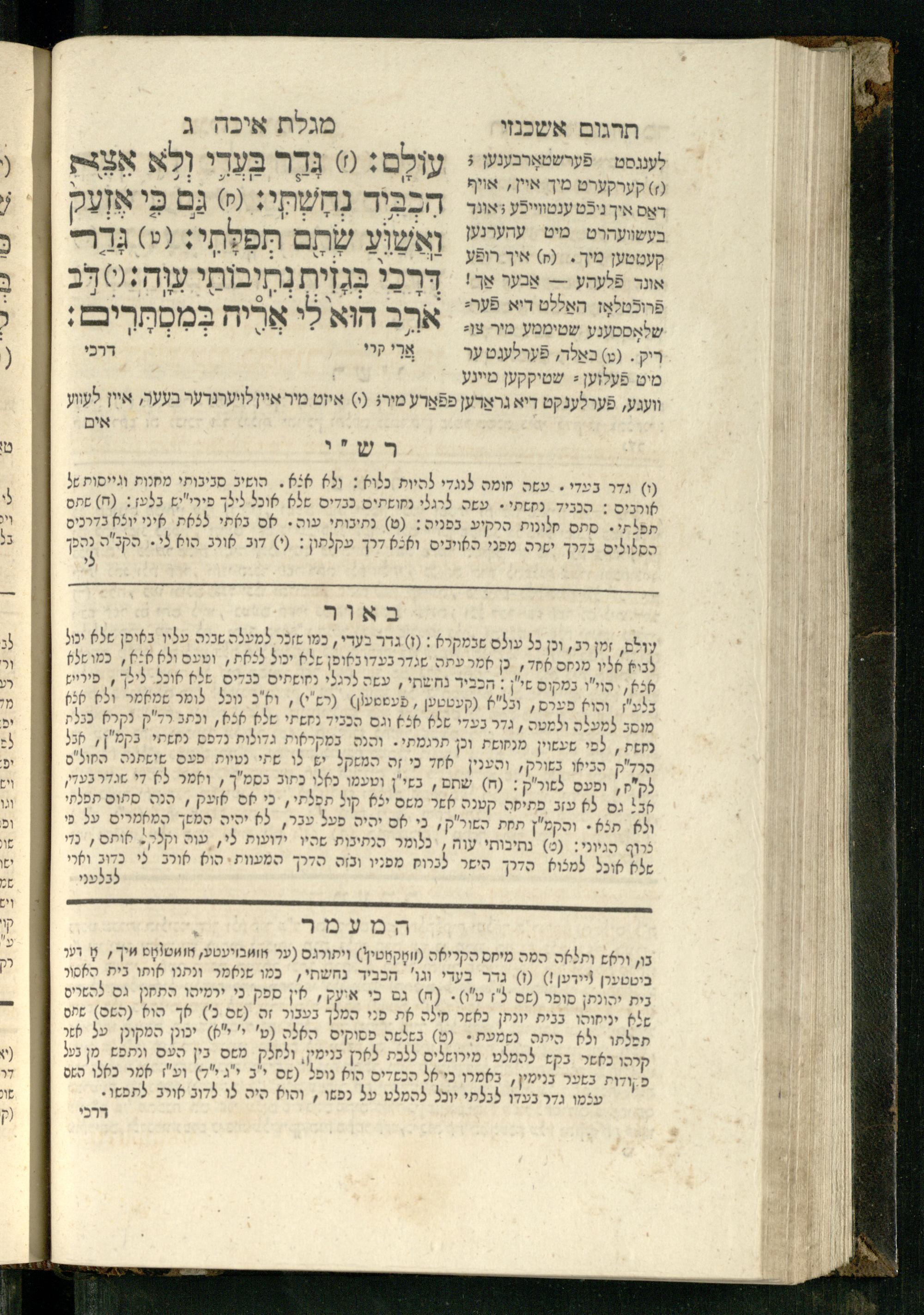 20 (1833) Ḥamesh megilot : ʿim Perush Rashi targum Ashkenazi u-veʾur : hugah bi-sheḳidah rabah u-ve-ʿiyun gadol ṿe-nosaf mavo ha-sheni ʿal megilat Rut, Ekhah, Ḳohelet, ṿe-Ester ; ṿe-ha-meʿamer ʿal kol megilah u-megilah / me-et ha-ḥakham ha-medaḳdeḳ mo.h.r.R. Ṿolf Meʾir (moreh lashon ʿIvri be-vet ḥinukh ha-normali asher be-Prag) ; ṿa-ani ha-madpis hosafti gam targum u-veʾur ʿal milot be-laʿaz ha-nimtsaʾot be-Fe. Rashi z.l.20 (1833) חמש מגילות : עם פירוש רש״י תרגום אשכנזי ובאור : הוגה בשקידה רבה ובעיון גדול ונוסף מבוא השני על מגילת רות, איכה, קהלת, ואסתר; והמעמר על כל מגלה ומגלה / מאת החכם המדקדק מוהר״ר וואלף מאיר (מורה לשון עברי בבית חנוך הנארמאלי אשר בפראג) ; ואני המדפיס הוספתי גם תרגום ובאור על מלות בלע"ז הנמצאות בפירוש״י ז״ל