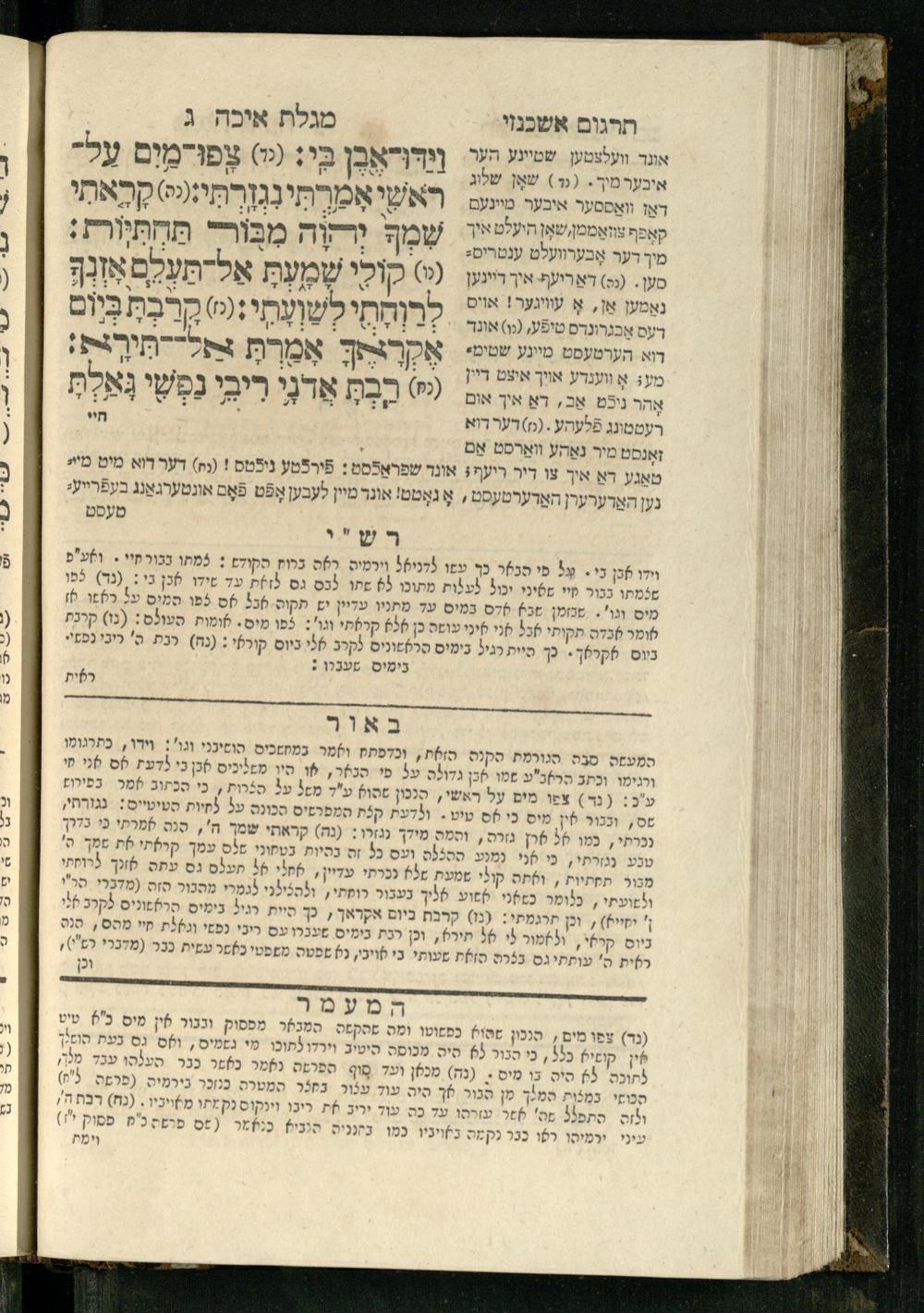 20 (1833) Ḥamesh megilot : ʿim Perush Rashi targum Ashkenazi u-veʾur : hugah bi-sheḳidah rabah u-ve-ʿiyun gadol ṿe-nosaf mavo ha-sheni ʿal megilat Rut, Ekhah, Ḳohelet, ṿe-Ester ; ṿe-ha-meʿamer ʿal kol megilah u-megilah / me-et ha-ḥakham ha-medaḳdeḳ mo.h.r.R. Ṿolf Meʾir (moreh lashon ʿIvri be-vet ḥinukh ha-normali asher be-Prag) ; ṿa-ani ha-madpis hosafti gam targum u-veʾur ʿal milot be-laʿaz ha-nimtsaʾot be-Fe. Rashi z.l.20 (1833) חמש מגילות : עם פירוש רש״י תרגום אשכנזי ובאור : הוגה בשקידה רבה ובעיון גדול ונוסף מבוא השני על מגילת רות, איכה, קהלת, ואסתר; והמעמר על כל מגלה ומגלה / מאת החכם המדקדק מוהר״ר וואלף מאיר (מורה לשון עברי בבית חנוך הנארמאלי אשר בפראג) ; ואני המדפיס הוספתי גם תרגום ובאור על מלות בלע"ז הנמצאות בפירוש״י ז״ל