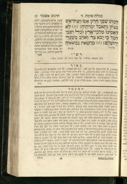 20 (1833) Ḥamesh megilot : ʿim Perush Rashi targum Ashkenazi u-veʾur : hugah bi-sheḳidah rabah u-ve-ʿiyun gadol ṿe-nosaf mavo ha-sheni ʿal megilat Rut, Ekhah, Ḳohelet, ṿe-Ester ; ṿe-ha-meʿamer ʿal kol megilah u-megilah / me-et ha-ḥakham ha-medaḳdeḳ mo.h.r.R. Ṿolf Meʾir (moreh lashon ʿIvri be-vet ḥinukh ha-normali asher be-Prag) ; ṿa-ani ha-madpis hosafti gam targum u-veʾur ʿal milot be-laʿaz ha-nimtsaʾot be-Fe. Rashi z.l.20 (1833) חמש מגילות : עם פירוש רש״י תרגום אשכנזי ובאור : הוגה בשקידה רבה ובעיון גדול ונוסף מבוא השני על מגילת רות, איכה, קהלת, ואסתר; והמעמר על כל מגלה ומגלה / מאת החכם המדקדק מוהר״ר וואלף מאיר (מורה לשון עברי בבית חנוך הנארמאלי אשר בפראג) ; ואני המדפיס הוספתי גם תרגום ובאור על מלות בלע"ז הנמצאות בפירוש״י ז״ל