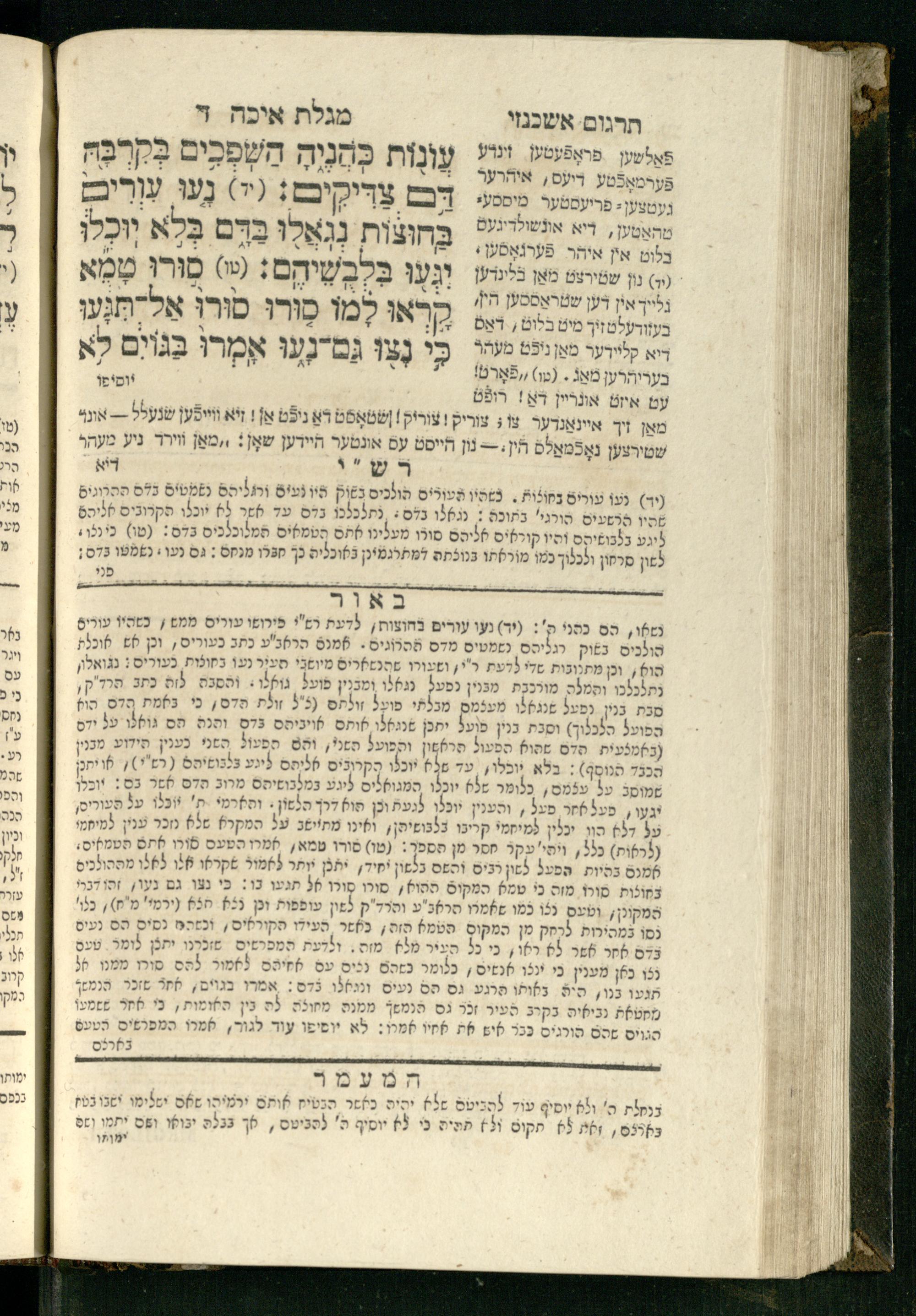 20 (1833) Ḥamesh megilot : ʿim Perush Rashi targum Ashkenazi u-veʾur : hugah bi-sheḳidah rabah u-ve-ʿiyun gadol ṿe-nosaf mavo ha-sheni ʿal megilat Rut, Ekhah, Ḳohelet, ṿe-Ester ; ṿe-ha-meʿamer ʿal kol megilah u-megilah / me-et ha-ḥakham ha-medaḳdeḳ mo.h.r.R. Ṿolf Meʾir (moreh lashon ʿIvri be-vet ḥinukh ha-normali asher be-Prag) ; ṿa-ani ha-madpis hosafti gam targum u-veʾur ʿal milot be-laʿaz ha-nimtsaʾot be-Fe. Rashi z.l.20 (1833) חמש מגילות : עם פירוש רש״י תרגום אשכנזי ובאור : הוגה בשקידה רבה ובעיון גדול ונוסף מבוא השני על מגילת רות, איכה, קהלת, ואסתר; והמעמר על כל מגלה ומגלה / מאת החכם המדקדק מוהר״ר וואלף מאיר (מורה לשון עברי בבית חנוך הנארמאלי אשר בפראג) ; ואני המדפיס הוספתי גם תרגום ובאור על מלות בלע"ז הנמצאות בפירוש״י ז״ל