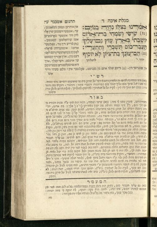 20 (1833) Ḥamesh megilot : ʿim Perush Rashi targum Ashkenazi u-veʾur : hugah bi-sheḳidah rabah u-ve-ʿiyun gadol ṿe-nosaf mavo ha-sheni ʿal megilat Rut, Ekhah, Ḳohelet, ṿe-Ester ; ṿe-ha-meʿamer ʿal kol megilah u-megilah / me-et ha-ḥakham ha-medaḳdeḳ mo.h.r.R. Ṿolf Meʾir (moreh lashon ʿIvri be-vet ḥinukh ha-normali asher be-Prag) ; ṿa-ani ha-madpis hosafti gam targum u-veʾur ʿal milot be-laʿaz ha-nimtsaʾot be-Fe. Rashi z.l.20 (1833) חמש מגילות : עם פירוש רש״י תרגום אשכנזי ובאור : הוגה בשקידה רבה ובעיון גדול ונוסף מבוא השני על מגילת רות, איכה, קהלת, ואסתר; והמעמר על כל מגלה ומגלה / מאת החכם המדקדק מוהר״ר וואלף מאיר (מורה לשון עברי בבית חנוך הנארמאלי אשר בפראג) ; ואני המדפיס הוספתי גם תרגום ובאור על מלות בלע"ז הנמצאות בפירוש״י ז״ל