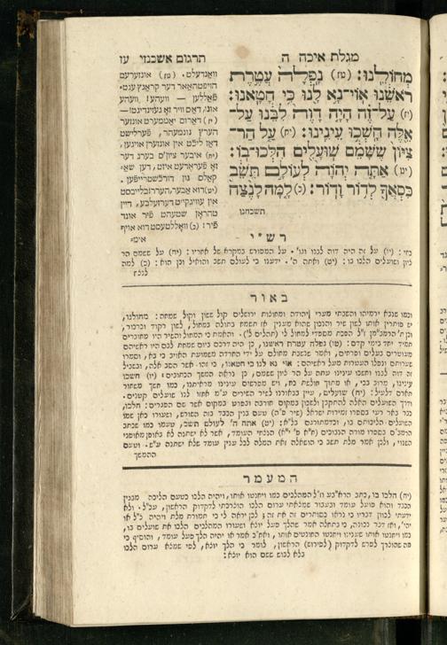 20 (1833) Ḥamesh megilot : ʿim Perush Rashi targum Ashkenazi u-veʾur : hugah bi-sheḳidah rabah u-ve-ʿiyun gadol ṿe-nosaf mavo ha-sheni ʿal megilat Rut, Ekhah, Ḳohelet, ṿe-Ester ; ṿe-ha-meʿamer ʿal kol megilah u-megilah / me-et ha-ḥakham ha-medaḳdeḳ mo.h.r.R. Ṿolf Meʾir (moreh lashon ʿIvri be-vet ḥinukh ha-normali asher be-Prag) ; ṿa-ani ha-madpis hosafti gam targum u-veʾur ʿal milot be-laʿaz ha-nimtsaʾot be-Fe. Rashi z.l.20 (1833) חמש מגילות : עם פירוש רש״י תרגום אשכנזי ובאור : הוגה בשקידה רבה ובעיון גדול ונוסף מבוא השני על מגילת רות, איכה, קהלת, ואסתר; והמעמר על כל מגלה ומגלה / מאת החכם המדקדק מוהר״ר וואלף מאיר (מורה לשון עברי בבית חנוך הנארמאלי אשר בפראג) ; ואני המדפיס הוספתי גם תרגום ובאור על מלות בלע"ז הנמצאות בפירוש״י ז״ל