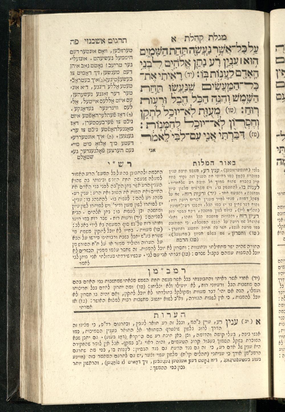 20 (1833) Ḥamesh megilot : ʿim Perush Rashi targum Ashkenazi u-veʾur : hugah bi-sheḳidah rabah u-ve-ʿiyun gadol ṿe-nosaf mavo ha-sheni ʿal megilat Rut, Ekhah, Ḳohelet, ṿe-Ester ; ṿe-ha-meʿamer ʿal kol megilah u-megilah / me-et ha-ḥakham ha-medaḳdeḳ mo.h.r.R. Ṿolf Meʾir (moreh lashon ʿIvri be-vet ḥinukh ha-normali asher be-Prag) ; ṿa-ani ha-madpis hosafti gam targum u-veʾur ʿal milot be-laʿaz ha-nimtsaʾot be-Fe. Rashi z.l.20 (1833) חמש מגילות : עם פירוש רש״י תרגום אשכנזי ובאור : הוגה בשקידה רבה ובעיון גדול ונוסף מבוא השני על מגילת רות, איכה, קהלת, ואסתר; והמעמר על כל מגלה ומגלה / מאת החכם המדקדק מוהר״ר וואלף מאיר (מורה לשון עברי בבית חנוך הנארמאלי אשר בפראג) ; ואני המדפיס הוספתי גם תרגום ובאור על מלות בלע"ז הנמצאות בפירוש״י ז״ל