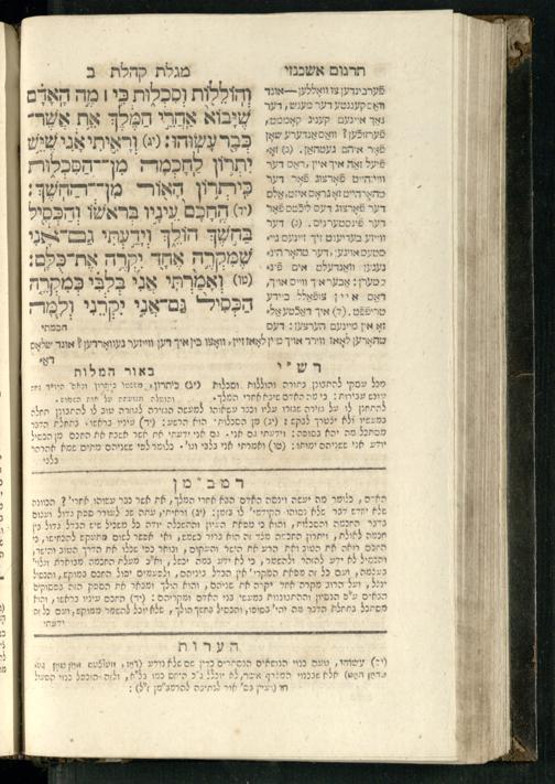 20 (1833) Ḥamesh megilot : ʿim Perush Rashi targum Ashkenazi u-veʾur : hugah bi-sheḳidah rabah u-ve-ʿiyun gadol ṿe-nosaf mavo ha-sheni ʿal megilat Rut, Ekhah, Ḳohelet, ṿe-Ester ; ṿe-ha-meʿamer ʿal kol megilah u-megilah / me-et ha-ḥakham ha-medaḳdeḳ mo.h.r.R. Ṿolf Meʾir (moreh lashon ʿIvri be-vet ḥinukh ha-normali asher be-Prag) ; ṿa-ani ha-madpis hosafti gam targum u-veʾur ʿal milot be-laʿaz ha-nimtsaʾot be-Fe. Rashi z.l.20 (1833) חמש מגילות : עם פירוש רש״י תרגום אשכנזי ובאור : הוגה בשקידה רבה ובעיון גדול ונוסף מבוא השני על מגילת רות, איכה, קהלת, ואסתר; והמעמר על כל מגלה ומגלה / מאת החכם המדקדק מוהר״ר וואלף מאיר (מורה לשון עברי בבית חנוך הנארמאלי אשר בפראג) ; ואני המדפיס הוספתי גם תרגום ובאור על מלות בלע"ז הנמצאות בפירוש״י ז״ל