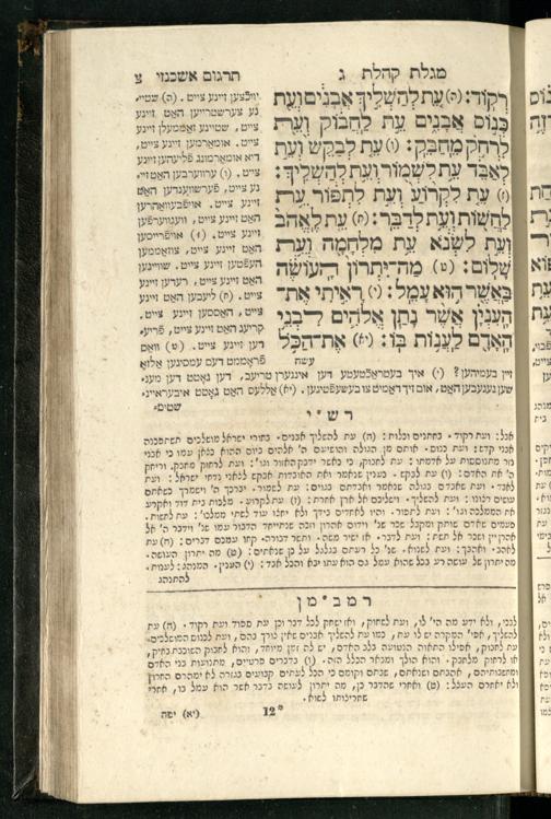 20 (1833) Ḥamesh megilot : ʿim Perush Rashi targum Ashkenazi u-veʾur : hugah bi-sheḳidah rabah u-ve-ʿiyun gadol ṿe-nosaf mavo ha-sheni ʿal megilat Rut, Ekhah, Ḳohelet, ṿe-Ester ; ṿe-ha-meʿamer ʿal kol megilah u-megilah / me-et ha-ḥakham ha-medaḳdeḳ mo.h.r.R. Ṿolf Meʾir (moreh lashon ʿIvri be-vet ḥinukh ha-normali asher be-Prag) ; ṿa-ani ha-madpis hosafti gam targum u-veʾur ʿal milot be-laʿaz ha-nimtsaʾot be-Fe. Rashi z.l.20 (1833) חמש מגילות : עם פירוש רש״י תרגום אשכנזי ובאור : הוגה בשקידה רבה ובעיון גדול ונוסף מבוא השני על מגילת רות, איכה, קהלת, ואסתר; והמעמר על כל מגלה ומגלה / מאת החכם המדקדק מוהר״ר וואלף מאיר (מורה לשון עברי בבית חנוך הנארמאלי אשר בפראג) ; ואני המדפיס הוספתי גם תרגום ובאור על מלות בלע"ז הנמצאות בפירוש״י ז״ל