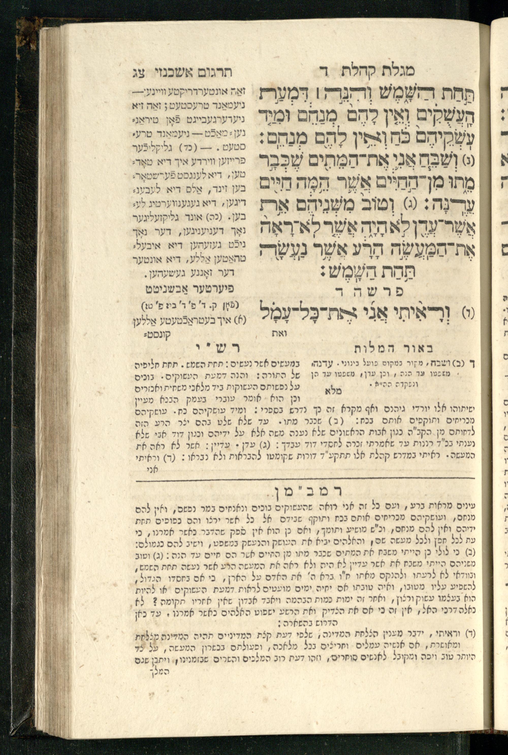 20 (1833) Ḥamesh megilot : ʿim Perush Rashi targum Ashkenazi u-veʾur : hugah bi-sheḳidah rabah u-ve-ʿiyun gadol ṿe-nosaf mavo ha-sheni ʿal megilat Rut, Ekhah, Ḳohelet, ṿe-Ester ; ṿe-ha-meʿamer ʿal kol megilah u-megilah / me-et ha-ḥakham ha-medaḳdeḳ mo.h.r.R. Ṿolf Meʾir (moreh lashon ʿIvri be-vet ḥinukh ha-normali asher be-Prag) ; ṿa-ani ha-madpis hosafti gam targum u-veʾur ʿal milot be-laʿaz ha-nimtsaʾot be-Fe. Rashi z.l.20 (1833) חמש מגילות : עם פירוש רש״י תרגום אשכנזי ובאור : הוגה בשקידה רבה ובעיון גדול ונוסף מבוא השני על מגילת רות, איכה, קהלת, ואסתר; והמעמר על כל מגלה ומגלה / מאת החכם המדקדק מוהר״ר וואלף מאיר (מורה לשון עברי בבית חנוך הנארמאלי אשר בפראג) ; ואני המדפיס הוספתי גם תרגום ובאור על מלות בלע"ז הנמצאות בפירוש״י ז״ל