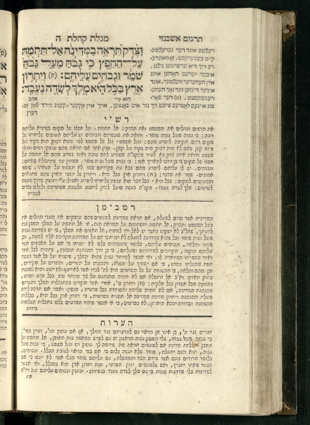 20 (1833) Ḥamesh megilot : ʿim Perush Rashi targum Ashkenazi u-veʾur : hugah bi-sheḳidah rabah u-ve-ʿiyun gadol ṿe-nosaf mavo ha-sheni ʿal megilat Rut, Ekhah, Ḳohelet, ṿe-Ester ; ṿe-ha-meʿamer ʿal kol megilah u-megilah / me-et ha-ḥakham ha-medaḳdeḳ mo.h.r.R. Ṿolf Meʾir (moreh lashon ʿIvri be-vet ḥinukh ha-normali asher be-Prag) ; ṿa-ani ha-madpis hosafti gam targum u-veʾur ʿal milot be-laʿaz ha-nimtsaʾot be-Fe. Rashi z.l.20 (1833) חמש מגילות : עם פירוש רש״י תרגום אשכנזי ובאור : הוגה בשקידה רבה ובעיון גדול ונוסף מבוא השני על מגילת רות, איכה, קהלת, ואסתר; והמעמר על כל מגלה ומגלה / מאת החכם המדקדק מוהר״ר וואלף מאיר (מורה לשון עברי בבית חנוך הנארמאלי אשר בפראג) ; ואני המדפיס הוספתי גם תרגום ובאור על מלות בלע"ז הנמצאות בפירוש״י ז״ל