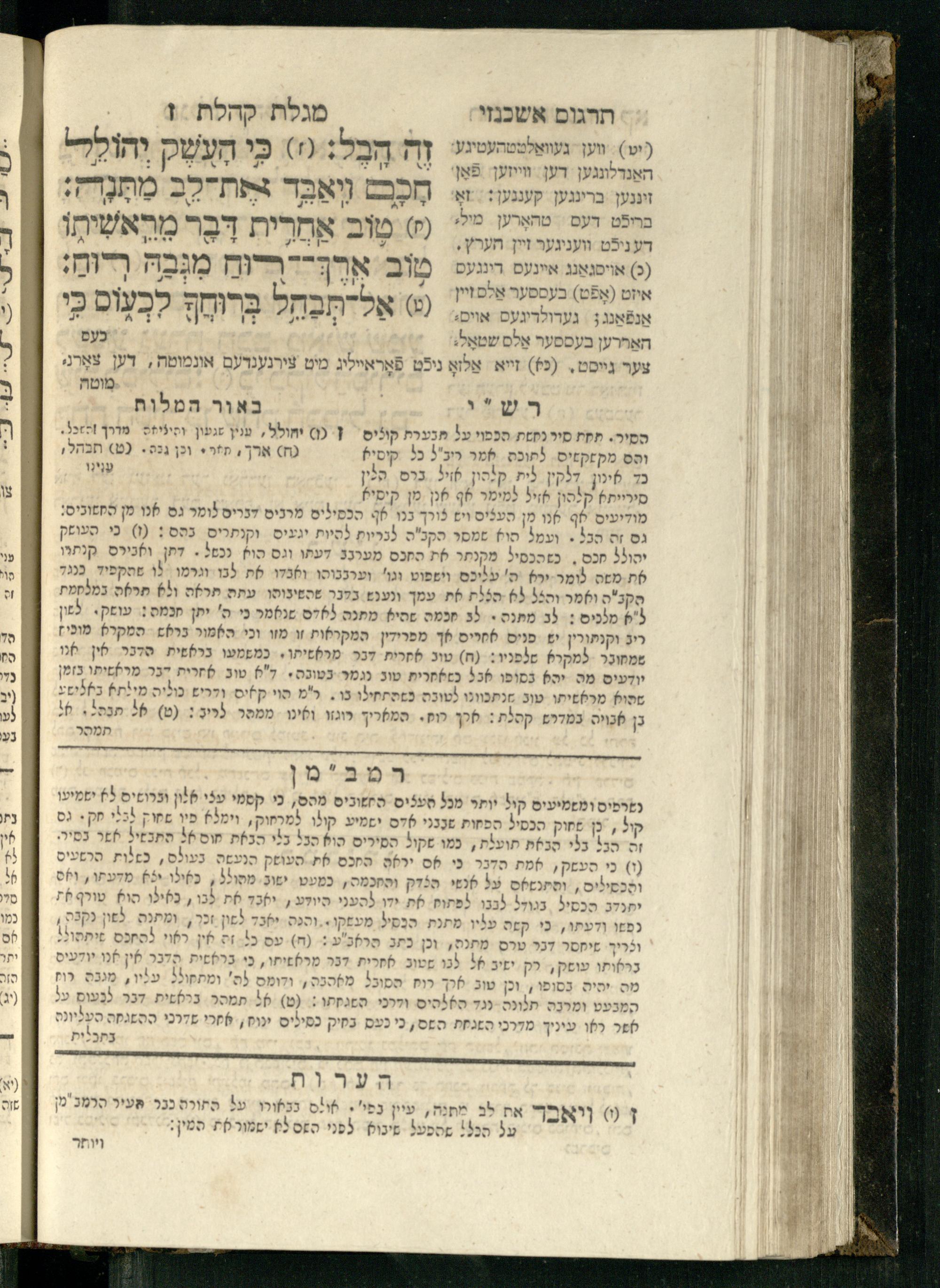 20 (1833) Ḥamesh megilot : ʿim Perush Rashi targum Ashkenazi u-veʾur : hugah bi-sheḳidah rabah u-ve-ʿiyun gadol ṿe-nosaf mavo ha-sheni ʿal megilat Rut, Ekhah, Ḳohelet, ṿe-Ester ; ṿe-ha-meʿamer ʿal kol megilah u-megilah / me-et ha-ḥakham ha-medaḳdeḳ mo.h.r.R. Ṿolf Meʾir (moreh lashon ʿIvri be-vet ḥinukh ha-normali asher be-Prag) ; ṿa-ani ha-madpis hosafti gam targum u-veʾur ʿal milot be-laʿaz ha-nimtsaʾot be-Fe. Rashi z.l.20 (1833) חמש מגילות : עם פירוש רש״י תרגום אשכנזי ובאור : הוגה בשקידה רבה ובעיון גדול ונוסף מבוא השני על מגילת רות, איכה, קהלת, ואסתר; והמעמר על כל מגלה ומגלה / מאת החכם המדקדק מוהר״ר וואלף מאיר (מורה לשון עברי בבית חנוך הנארמאלי אשר בפראג) ; ואני המדפיס הוספתי גם תרגום ובאור על מלות בלע"ז הנמצאות בפירוש״י ז״ל