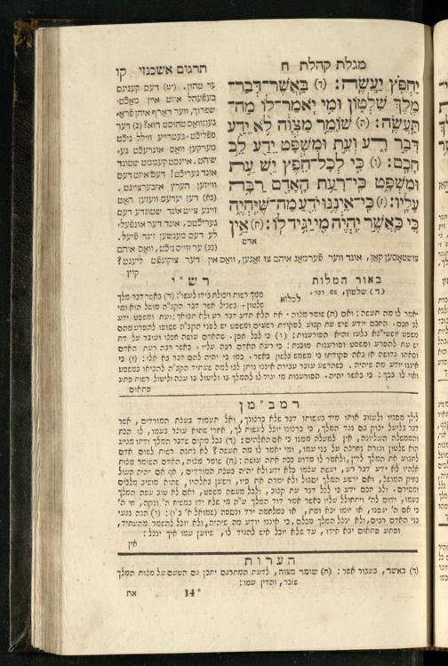 20 (1833) Ḥamesh megilot : ʿim Perush Rashi targum Ashkenazi u-veʾur : hugah bi-sheḳidah rabah u-ve-ʿiyun gadol ṿe-nosaf mavo ha-sheni ʿal megilat Rut, Ekhah, Ḳohelet, ṿe-Ester ; ṿe-ha-meʿamer ʿal kol megilah u-megilah / me-et ha-ḥakham ha-medaḳdeḳ mo.h.r.R. Ṿolf Meʾir (moreh lashon ʿIvri be-vet ḥinukh ha-normali asher be-Prag) ; ṿa-ani ha-madpis hosafti gam targum u-veʾur ʿal milot be-laʿaz ha-nimtsaʾot be-Fe. Rashi z.l.20 (1833) חמש מגילות : עם פירוש רש״י תרגום אשכנזי ובאור : הוגה בשקידה רבה ובעיון גדול ונוסף מבוא השני על מגילת רות, איכה, קהלת, ואסתר; והמעמר על כל מגלה ומגלה / מאת החכם המדקדק מוהר״ר וואלף מאיר (מורה לשון עברי בבית חנוך הנארמאלי אשר בפראג) ; ואני המדפיס הוספתי גם תרגום ובאור על מלות בלע"ז הנמצאות בפירוש״י ז״ל