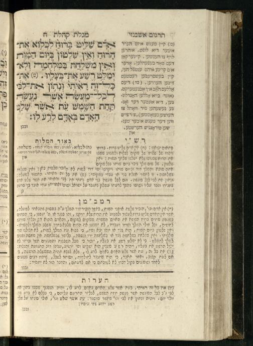 20 (1833) Ḥamesh megilot : ʿim Perush Rashi targum Ashkenazi u-veʾur : hugah bi-sheḳidah rabah u-ve-ʿiyun gadol ṿe-nosaf mavo ha-sheni ʿal megilat Rut, Ekhah, Ḳohelet, ṿe-Ester ; ṿe-ha-meʿamer ʿal kol megilah u-megilah / me-et ha-ḥakham ha-medaḳdeḳ mo.h.r.R. Ṿolf Meʾir (moreh lashon ʿIvri be-vet ḥinukh ha-normali asher be-Prag) ; ṿa-ani ha-madpis hosafti gam targum u-veʾur ʿal milot be-laʿaz ha-nimtsaʾot be-Fe. Rashi z.l.20 (1833) חמש מגילות : עם פירוש רש״י תרגום אשכנזי ובאור : הוגה בשקידה רבה ובעיון גדול ונוסף מבוא השני על מגילת רות, איכה, קהלת, ואסתר; והמעמר על כל מגלה ומגלה / מאת החכם המדקדק מוהר״ר וואלף מאיר (מורה לשון עברי בבית חנוך הנארמאלי אשר בפראג) ; ואני המדפיס הוספתי גם תרגום ובאור על מלות בלע"ז הנמצאות בפירוש״י ז״ל