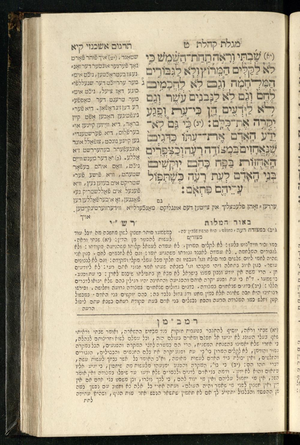 20 (1833) Ḥamesh megilot : ʿim Perush Rashi targum Ashkenazi u-veʾur : hugah bi-sheḳidah rabah u-ve-ʿiyun gadol ṿe-nosaf mavo ha-sheni ʿal megilat Rut, Ekhah, Ḳohelet, ṿe-Ester ; ṿe-ha-meʿamer ʿal kol megilah u-megilah / me-et ha-ḥakham ha-medaḳdeḳ mo.h.r.R. Ṿolf Meʾir (moreh lashon ʿIvri be-vet ḥinukh ha-normali asher be-Prag) ; ṿa-ani ha-madpis hosafti gam targum u-veʾur ʿal milot be-laʿaz ha-nimtsaʾot be-Fe. Rashi z.l.20 (1833) חמש מגילות : עם פירוש רש״י תרגום אשכנזי ובאור : הוגה בשקידה רבה ובעיון גדול ונוסף מבוא השני על מגילת רות, איכה, קהלת, ואסתר; והמעמר על כל מגלה ומגלה / מאת החכם המדקדק מוהר״ר וואלף מאיר (מורה לשון עברי בבית חנוך הנארמאלי אשר בפראג) ; ואני המדפיס הוספתי גם תרגום ובאור על מלות בלע"ז הנמצאות בפירוש״י ז״ל