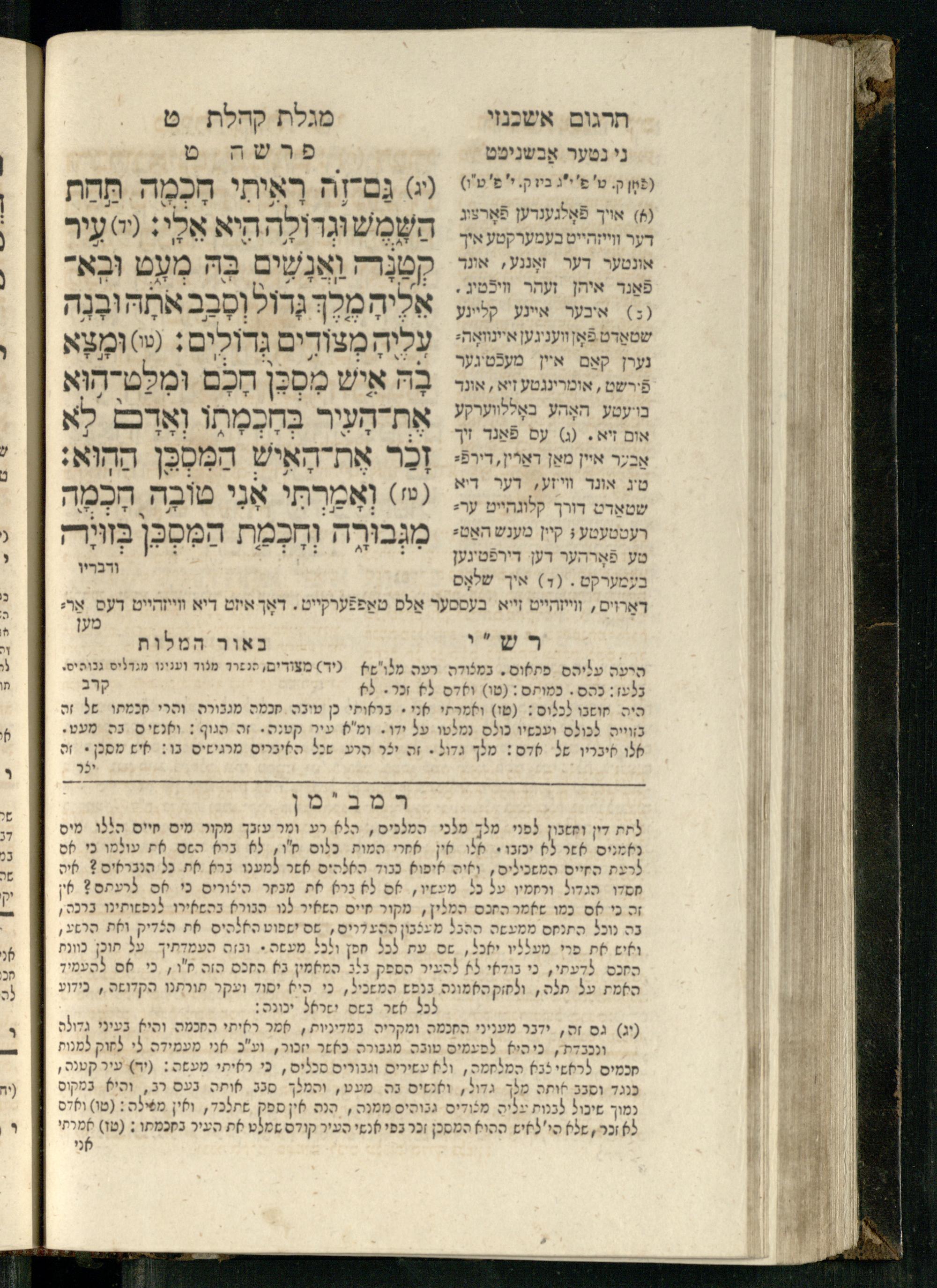 20 (1833) Ḥamesh megilot : ʿim Perush Rashi targum Ashkenazi u-veʾur : hugah bi-sheḳidah rabah u-ve-ʿiyun gadol ṿe-nosaf mavo ha-sheni ʿal megilat Rut, Ekhah, Ḳohelet, ṿe-Ester ; ṿe-ha-meʿamer ʿal kol megilah u-megilah / me-et ha-ḥakham ha-medaḳdeḳ mo.h.r.R. Ṿolf Meʾir (moreh lashon ʿIvri be-vet ḥinukh ha-normali asher be-Prag) ; ṿa-ani ha-madpis hosafti gam targum u-veʾur ʿal milot be-laʿaz ha-nimtsaʾot be-Fe. Rashi z.l.20 (1833) חמש מגילות : עם פירוש רש״י תרגום אשכנזי ובאור : הוגה בשקידה רבה ובעיון גדול ונוסף מבוא השני על מגילת רות, איכה, קהלת, ואסתר; והמעמר על כל מגלה ומגלה / מאת החכם המדקדק מוהר״ר וואלף מאיר (מורה לשון עברי בבית חנוך הנארמאלי אשר בפראג) ; ואני המדפיס הוספתי גם תרגום ובאור על מלות בלע"ז הנמצאות בפירוש״י ז״ל