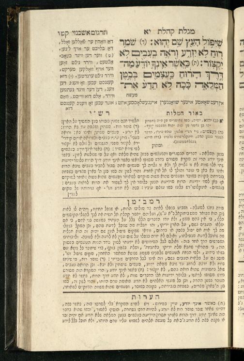20 (1833) Ḥamesh megilot : ʿim Perush Rashi targum Ashkenazi u-veʾur : hugah bi-sheḳidah rabah u-ve-ʿiyun gadol ṿe-nosaf mavo ha-sheni ʿal megilat Rut, Ekhah, Ḳohelet, ṿe-Ester ; ṿe-ha-meʿamer ʿal kol megilah u-megilah / me-et ha-ḥakham ha-medaḳdeḳ mo.h.r.R. Ṿolf Meʾir (moreh lashon ʿIvri be-vet ḥinukh ha-normali asher be-Prag) ; ṿa-ani ha-madpis hosafti gam targum u-veʾur ʿal milot be-laʿaz ha-nimtsaʾot be-Fe. Rashi z.l.20 (1833) חמש מגילות : עם פירוש רש״י תרגום אשכנזי ובאור : הוגה בשקידה רבה ובעיון גדול ונוסף מבוא השני על מגילת רות, איכה, קהלת, ואסתר; והמעמר על כל מגלה ומגלה / מאת החכם המדקדק מוהר״ר וואלף מאיר (מורה לשון עברי בבית חנוך הנארמאלי אשר בפראג) ; ואני המדפיס הוספתי גם תרגום ובאור על מלות בלע"ז הנמצאות בפירוש״י ז״ל