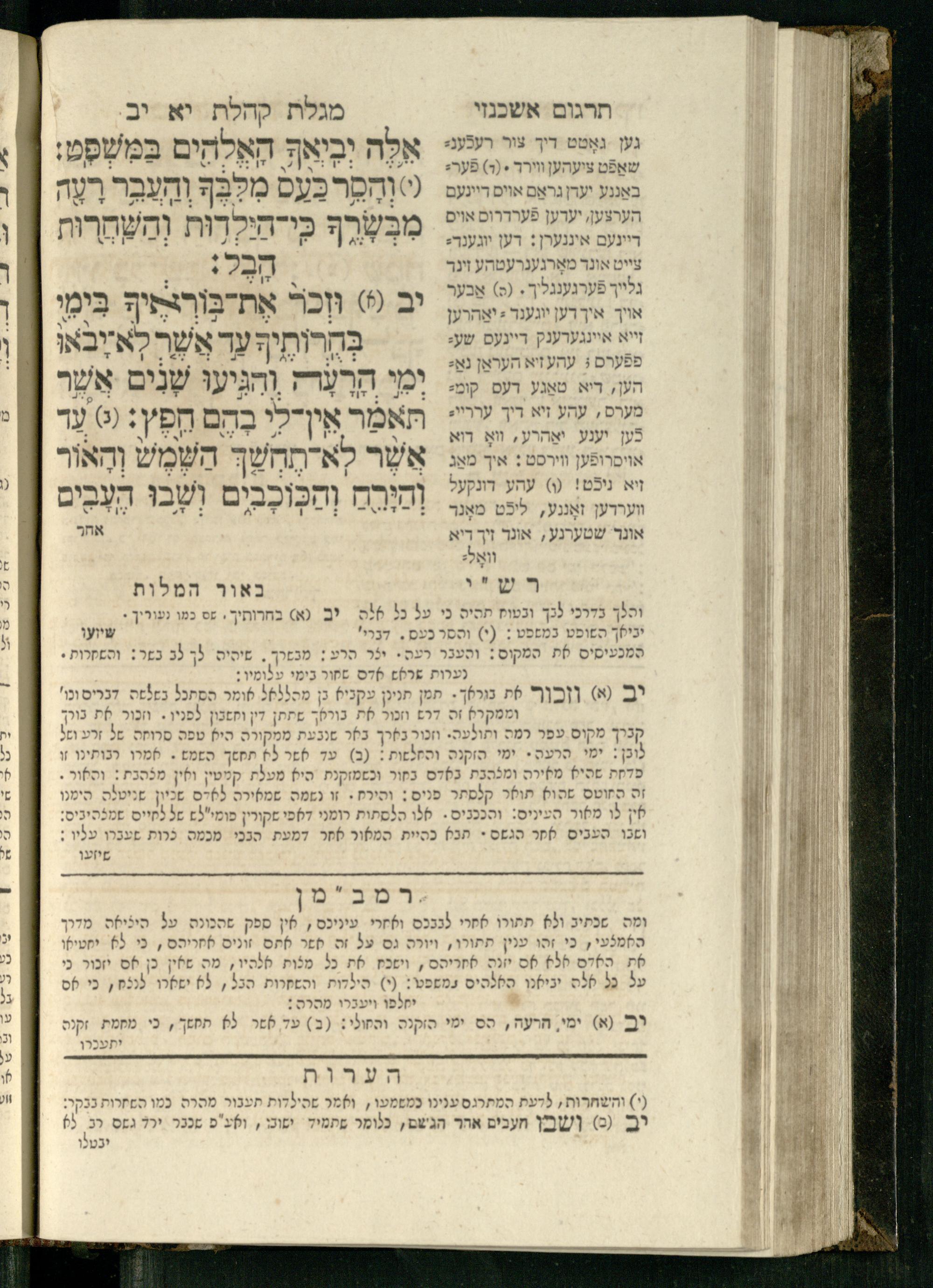 20 (1833) Ḥamesh megilot : ʿim Perush Rashi targum Ashkenazi u-veʾur : hugah bi-sheḳidah rabah u-ve-ʿiyun gadol ṿe-nosaf mavo ha-sheni ʿal megilat Rut, Ekhah, Ḳohelet, ṿe-Ester ; ṿe-ha-meʿamer ʿal kol megilah u-megilah / me-et ha-ḥakham ha-medaḳdeḳ mo.h.r.R. Ṿolf Meʾir (moreh lashon ʿIvri be-vet ḥinukh ha-normali asher be-Prag) ; ṿa-ani ha-madpis hosafti gam targum u-veʾur ʿal milot be-laʿaz ha-nimtsaʾot be-Fe. Rashi z.l.20 (1833) חמש מגילות : עם פירוש רש״י תרגום אשכנזי ובאור : הוגה בשקידה רבה ובעיון גדול ונוסף מבוא השני על מגילת רות, איכה, קהלת, ואסתר; והמעמר על כל מגלה ומגלה / מאת החכם המדקדק מוהר״ר וואלף מאיר (מורה לשון עברי בבית חנוך הנארמאלי אשר בפראג) ; ואני המדפיס הוספתי גם תרגום ובאור על מלות בלע"ז הנמצאות בפירוש״י ז״ל