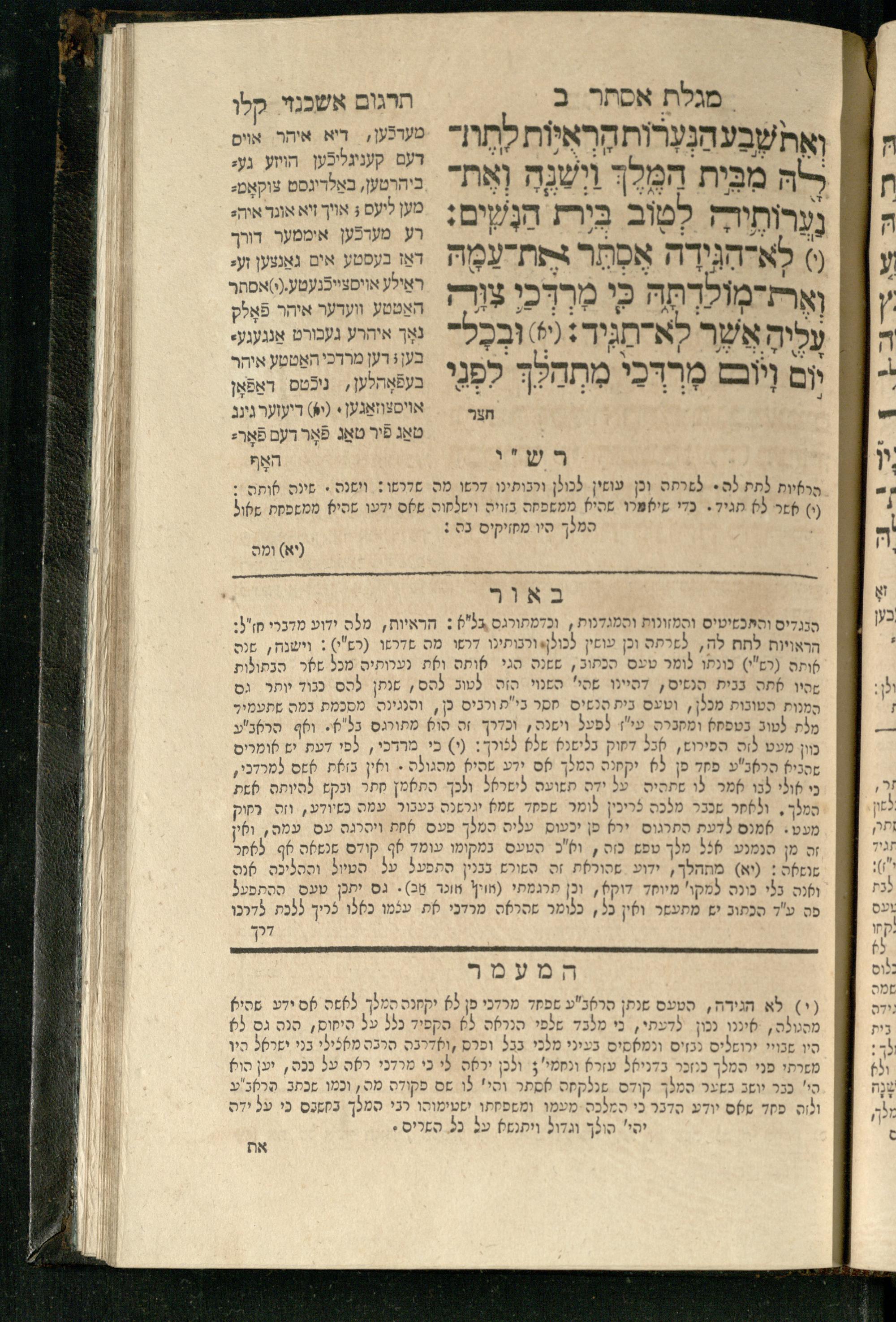 20 (1833) Ḥamesh megilot : ʿim Perush Rashi targum Ashkenazi u-veʾur : hugah bi-sheḳidah rabah u-ve-ʿiyun gadol ṿe-nosaf mavo ha-sheni ʿal megilat Rut, Ekhah, Ḳohelet, ṿe-Ester ; ṿe-ha-meʿamer ʿal kol megilah u-megilah / me-et ha-ḥakham ha-medaḳdeḳ mo.h.r.R. Ṿolf Meʾir (moreh lashon ʿIvri be-vet ḥinukh ha-normali asher be-Prag) ; ṿa-ani ha-madpis hosafti gam targum u-veʾur ʿal milot be-laʿaz ha-nimtsaʾot be-Fe. Rashi z.l.20 (1833) חמש מגילות : עם פירוש רש״י תרגום אשכנזי ובאור : הוגה בשקידה רבה ובעיון גדול ונוסף מבוא השני על מגילת רות, איכה, קהלת, ואסתר; והמעמר על כל מגלה ומגלה / מאת החכם המדקדק מוהר״ר וואלף מאיר (מורה לשון עברי בבית חנוך הנארמאלי אשר בפראג) ; ואני המדפיס הוספתי גם תרגום ובאור על מלות בלע"ז הנמצאות בפירוש״י ז״ל