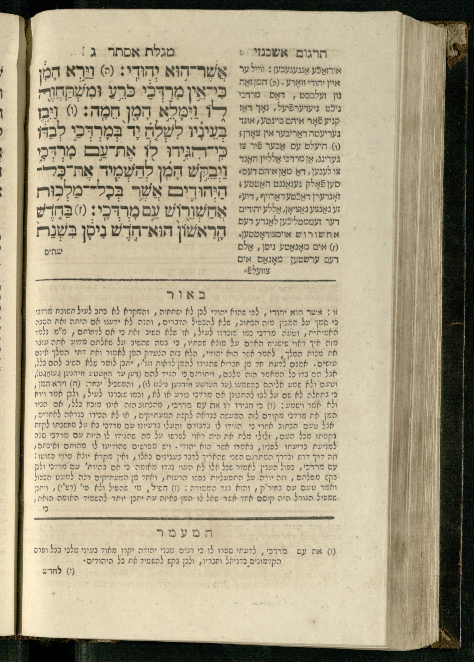 20 (1833) Ḥamesh megilot : ʿim Perush Rashi targum Ashkenazi u-veʾur : hugah bi-sheḳidah rabah u-ve-ʿiyun gadol ṿe-nosaf mavo ha-sheni ʿal megilat Rut, Ekhah, Ḳohelet, ṿe-Ester ; ṿe-ha-meʿamer ʿal kol megilah u-megilah / me-et ha-ḥakham ha-medaḳdeḳ mo.h.r.R. Ṿolf Meʾir (moreh lashon ʿIvri be-vet ḥinukh ha-normali asher be-Prag) ; ṿa-ani ha-madpis hosafti gam targum u-veʾur ʿal milot be-laʿaz ha-nimtsaʾot be-Fe. Rashi z.l.20 (1833) חמש מגילות : עם פירוש רש״י תרגום אשכנזי ובאור : הוגה בשקידה רבה ובעיון גדול ונוסף מבוא השני על מגילת רות, איכה, קהלת, ואסתר; והמעמר על כל מגלה ומגלה / מאת החכם המדקדק מוהר״ר וואלף מאיר (מורה לשון עברי בבית חנוך הנארמאלי אשר בפראג) ; ואני המדפיס הוספתי גם תרגום ובאור על מלות בלע"ז הנמצאות בפירוש״י ז״ל