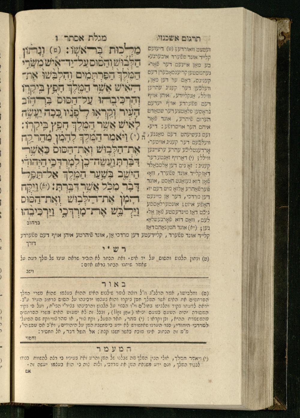 20 (1833) Ḥamesh megilot : ʿim Perush Rashi targum Ashkenazi u-veʾur : hugah bi-sheḳidah rabah u-ve-ʿiyun gadol ṿe-nosaf mavo ha-sheni ʿal megilat Rut, Ekhah, Ḳohelet, ṿe-Ester ; ṿe-ha-meʿamer ʿal kol megilah u-megilah / me-et ha-ḥakham ha-medaḳdeḳ mo.h.r.R. Ṿolf Meʾir (moreh lashon ʿIvri be-vet ḥinukh ha-normali asher be-Prag) ; ṿa-ani ha-madpis hosafti gam targum u-veʾur ʿal milot be-laʿaz ha-nimtsaʾot be-Fe. Rashi z.l.20 (1833) חמש מגילות : עם פירוש רש״י תרגום אשכנזי ובאור : הוגה בשקידה רבה ובעיון גדול ונוסף מבוא השני על מגילת רות, איכה, קהלת, ואסתר; והמעמר על כל מגלה ומגלה / מאת החכם המדקדק מוהר״ר וואלף מאיר (מורה לשון עברי בבית חנוך הנארמאלי אשר בפראג) ; ואני המדפיס הוספתי גם תרגום ובאור על מלות בלע"ז הנמצאות בפירוש״י ז״ל