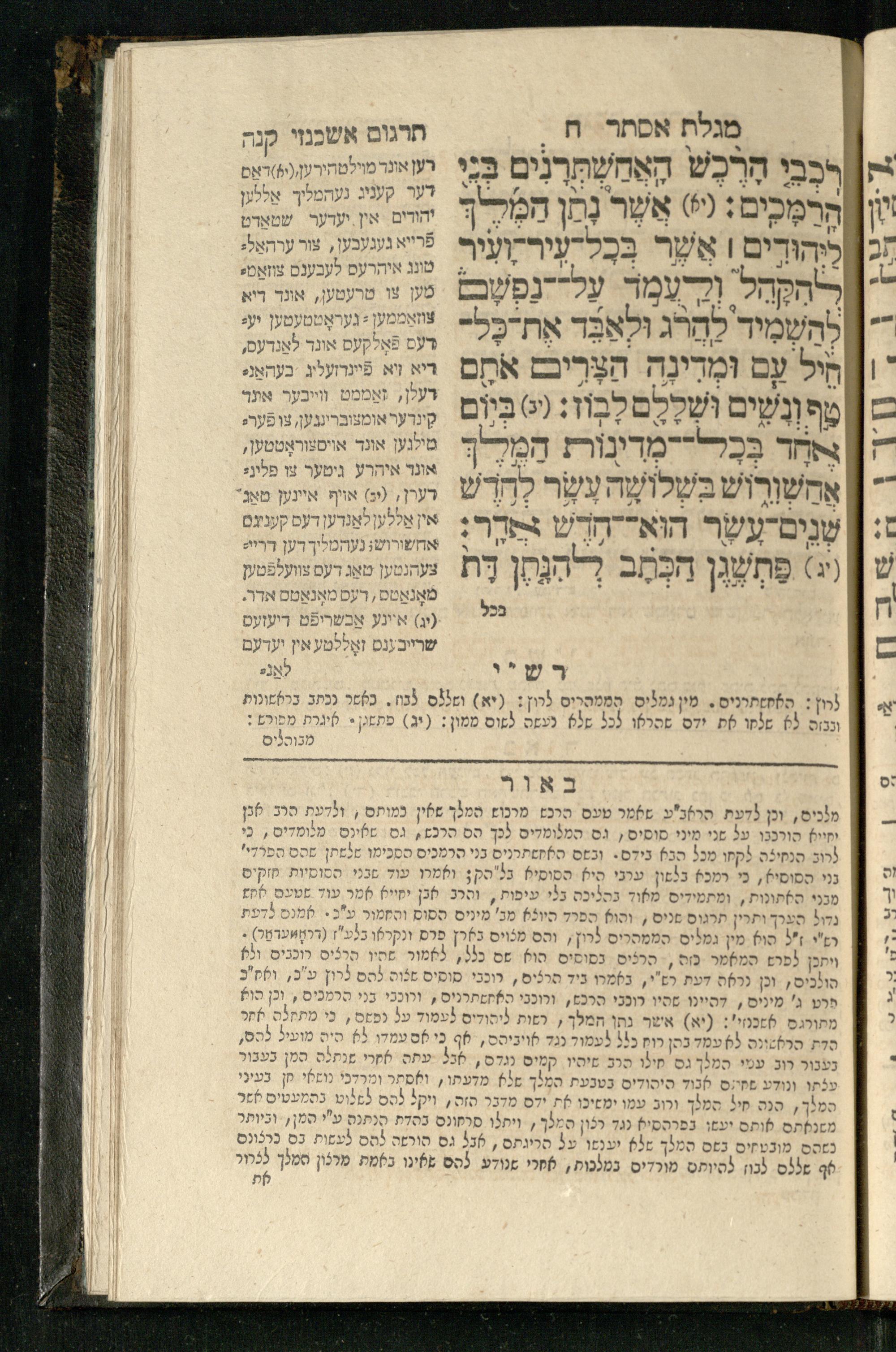 20 (1833) Ḥamesh megilot : ʿim Perush Rashi targum Ashkenazi u-veʾur : hugah bi-sheḳidah rabah u-ve-ʿiyun gadol ṿe-nosaf mavo ha-sheni ʿal megilat Rut, Ekhah, Ḳohelet, ṿe-Ester ; ṿe-ha-meʿamer ʿal kol megilah u-megilah / me-et ha-ḥakham ha-medaḳdeḳ mo.h.r.R. Ṿolf Meʾir (moreh lashon ʿIvri be-vet ḥinukh ha-normali asher be-Prag) ; ṿa-ani ha-madpis hosafti gam targum u-veʾur ʿal milot be-laʿaz ha-nimtsaʾot be-Fe. Rashi z.l.20 (1833) חמש מגילות : עם פירוש רש״י תרגום אשכנזי ובאור : הוגה בשקידה רבה ובעיון גדול ונוסף מבוא השני על מגילת רות, איכה, קהלת, ואסתר; והמעמר על כל מגלה ומגלה / מאת החכם המדקדק מוהר״ר וואלף מאיר (מורה לשון עברי בבית חנוך הנארמאלי אשר בפראג) ; ואני המדפיס הוספתי גם תרגום ובאור על מלות בלע"ז הנמצאות בפירוש״י ז״ל