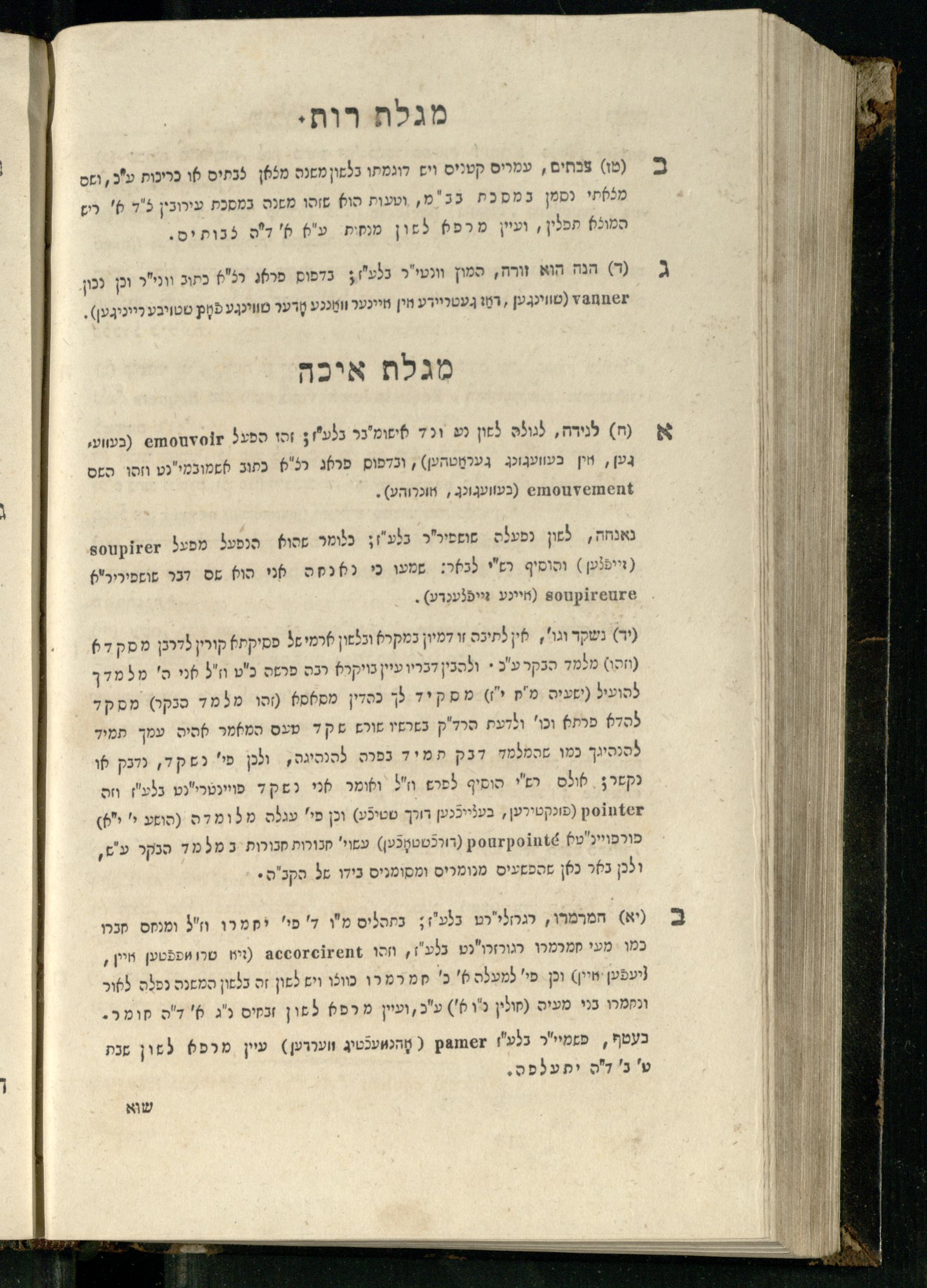 20 (1833) Ḥamesh megilot : ʿim Perush Rashi targum Ashkenazi u-veʾur : hugah bi-sheḳidah rabah u-ve-ʿiyun gadol ṿe-nosaf mavo ha-sheni ʿal megilat Rut, Ekhah, Ḳohelet, ṿe-Ester ; ṿe-ha-meʿamer ʿal kol megilah u-megilah / me-et ha-ḥakham ha-medaḳdeḳ mo.h.r.R. Ṿolf Meʾir (moreh lashon ʿIvri be-vet ḥinukh ha-normali asher be-Prag) ; ṿa-ani ha-madpis hosafti gam targum u-veʾur ʿal milot be-laʿaz ha-nimtsaʾot be-Fe. Rashi z.l.20 (1833) חמש מגילות : עם פירוש רש״י תרגום אשכנזי ובאור : הוגה בשקידה רבה ובעיון גדול ונוסף מבוא השני על מגילת רות, איכה, קהלת, ואסתר; והמעמר על כל מגלה ומגלה / מאת החכם המדקדק מוהר״ר וואלף מאיר (מורה לשון עברי בבית חנוך הנארמאלי אשר בפראג) ; ואני המדפיס הוספתי גם תרגום ובאור על מלות בלע"ז הנמצאות בפירוש״י ז״ל