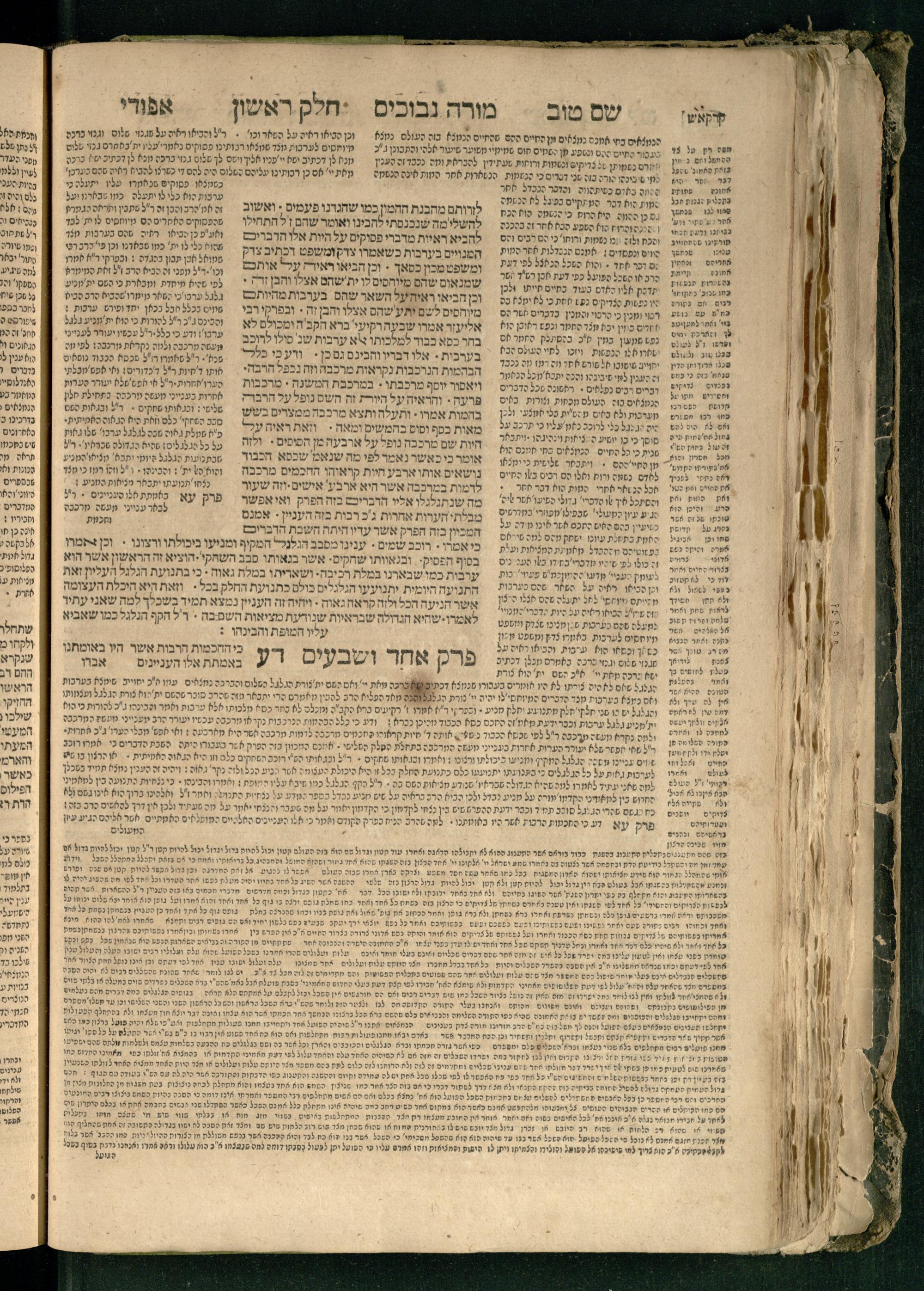 Moreh nevukhim = Doctor Perplexorum / le-ha-maʾor ha-gadol gaʾon Yiśraʾel ha-rav rabenu Mosheh bar Maimon ... u-perusho ... Shem Ṭov u-perush Efodi ... ṿe-hosafnu ... perush ... n. [Ibn] Ḳreśḳaś ... gam kaṿanat kol pereḳ ... ʿal daʿat ... he-Ḥarizi gam perush Milot zarot le-Ibn Tibon ... gam pesuḳe ha-Torah u-neviʾim u-ketuvim ... ʿal sidram ... hosafnu ʿal ha-rishonim le-hatsiv simanim ben maʾamarim she-be-moreh ...מורה נבוכים / להמאור הגדול גאון ישראל הרב רבינו משה בר מימון ... ופירושו שם טוב ופירוש אפודי ... והוספנו ... פירוש ן. [אבן] קרשקש ... גם כוונת כל פרק ... על דעת ... החריזי גם פירוש מלות זרות לאבן תבון ... גם פסוקי התורה ונביאים וכתובים ... על סדרם ... הוספנו על הראשונים להציב סימנים בין מאמרים שבמורה ...