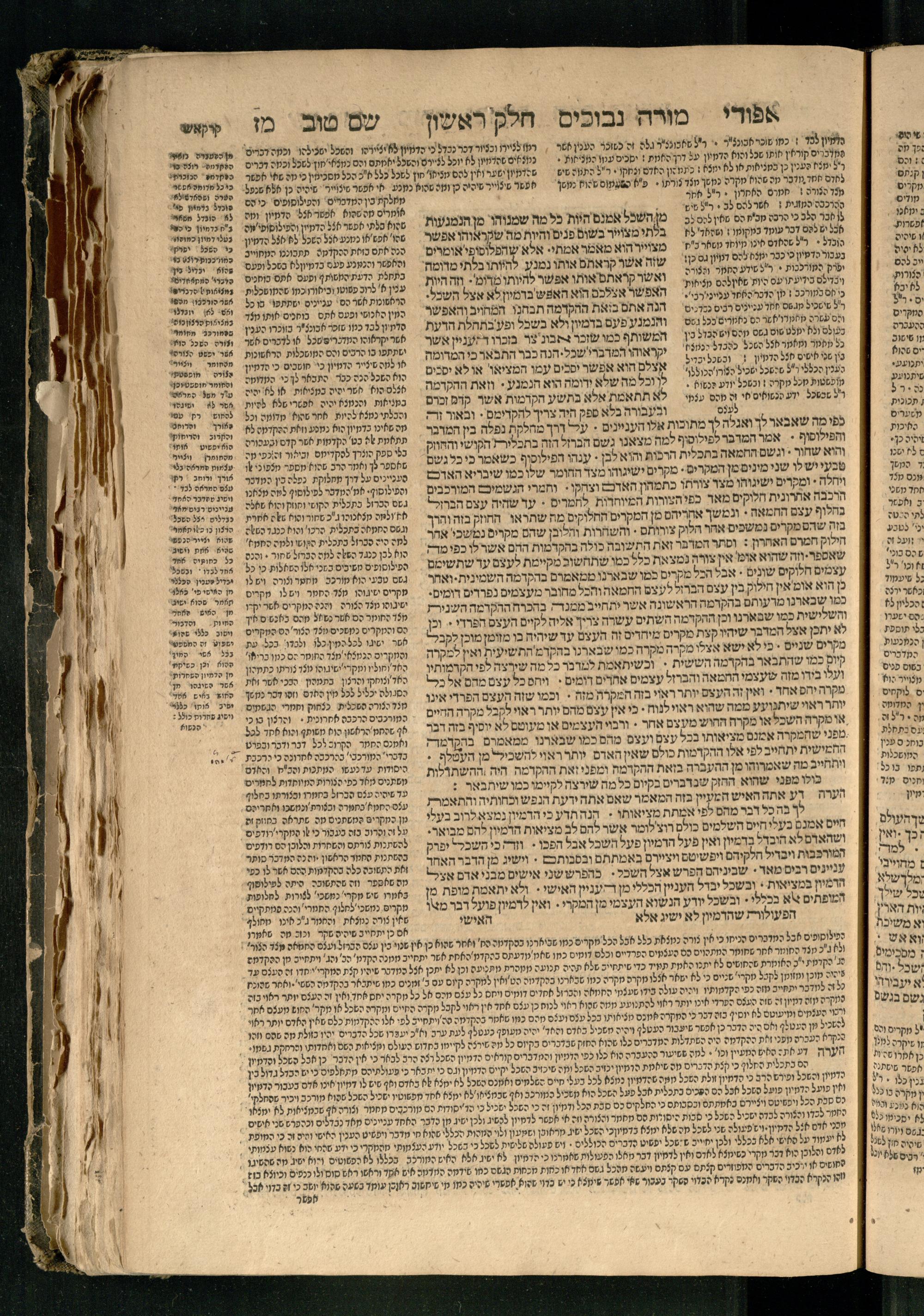 Moreh nevukhim = Doctor Perplexorum / le-ha-maʾor ha-gadol gaʾon Yiśraʾel ha-rav rabenu Mosheh bar Maimon ... u-perusho ... Shem Ṭov u-perush Efodi ... ṿe-hosafnu ... perush ... n. [Ibn] Ḳreśḳaś ... gam kaṿanat kol pereḳ ... ʿal daʿat ... he-Ḥarizi gam perush Milot zarot le-Ibn Tibon ... gam pesuḳe ha-Torah u-neviʾim u-ketuvim ... ʿal sidram ... hosafnu ʿal ha-rishonim le-hatsiv simanim ben maʾamarim she-be-moreh ...מורה נבוכים / להמאור הגדול גאון ישראל הרב רבינו משה בר מימון ... ופירושו שם טוב ופירוש אפודי ... והוספנו ... פירוש ן. [אבן] קרשקש ... גם כוונת כל פרק ... על דעת ... החריזי גם פירוש מלות זרות לאבן תבון ... גם פסוקי התורה ונביאים וכתובים ... על סדרם ... הוספנו על הראשונים להציב סימנים בין מאמרים שבמורה ...