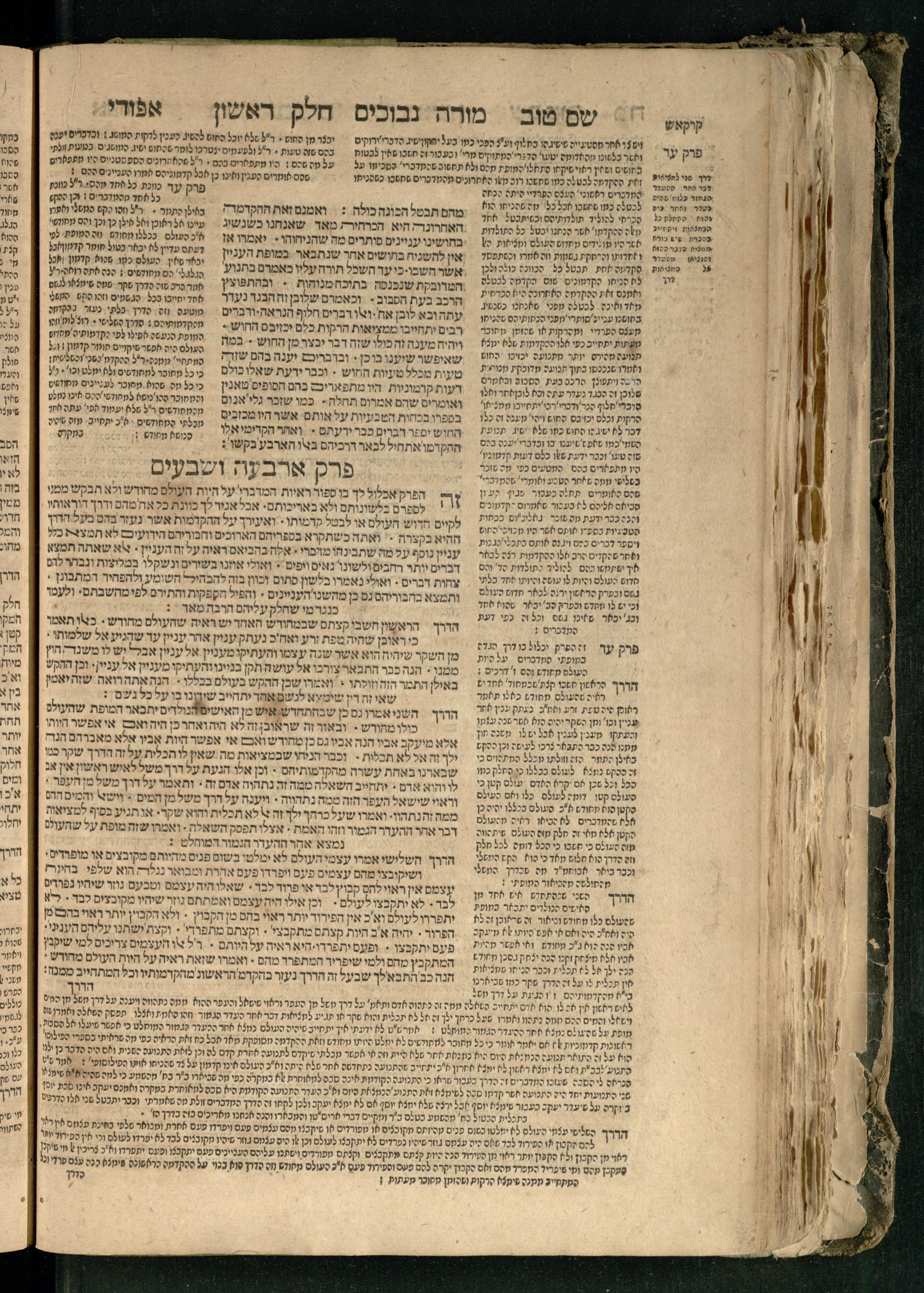 Moreh nevukhim = Doctor Perplexorum / le-ha-maʾor ha-gadol gaʾon Yiśraʾel ha-rav rabenu Mosheh bar Maimon ... u-perusho ... Shem Ṭov u-perush Efodi ... ṿe-hosafnu ... perush ... n. [Ibn] Ḳreśḳaś ... gam kaṿanat kol pereḳ ... ʿal daʿat ... he-Ḥarizi gam perush Milot zarot le-Ibn Tibon ... gam pesuḳe ha-Torah u-neviʾim u-ketuvim ... ʿal sidram ... hosafnu ʿal ha-rishonim le-hatsiv simanim ben maʾamarim she-be-moreh ...מורה נבוכים / להמאור הגדול גאון ישראל הרב רבינו משה בר מימון ... ופירושו שם טוב ופירוש אפודי ... והוספנו ... פירוש ן. [אבן] קרשקש ... גם כוונת כל פרק ... על דעת ... החריזי גם פירוש מלות זרות לאבן תבון ... גם פסוקי התורה ונביאים וכתובים ... על סדרם ... הוספנו על הראשונים להציב סימנים בין מאמרים שבמורה ...