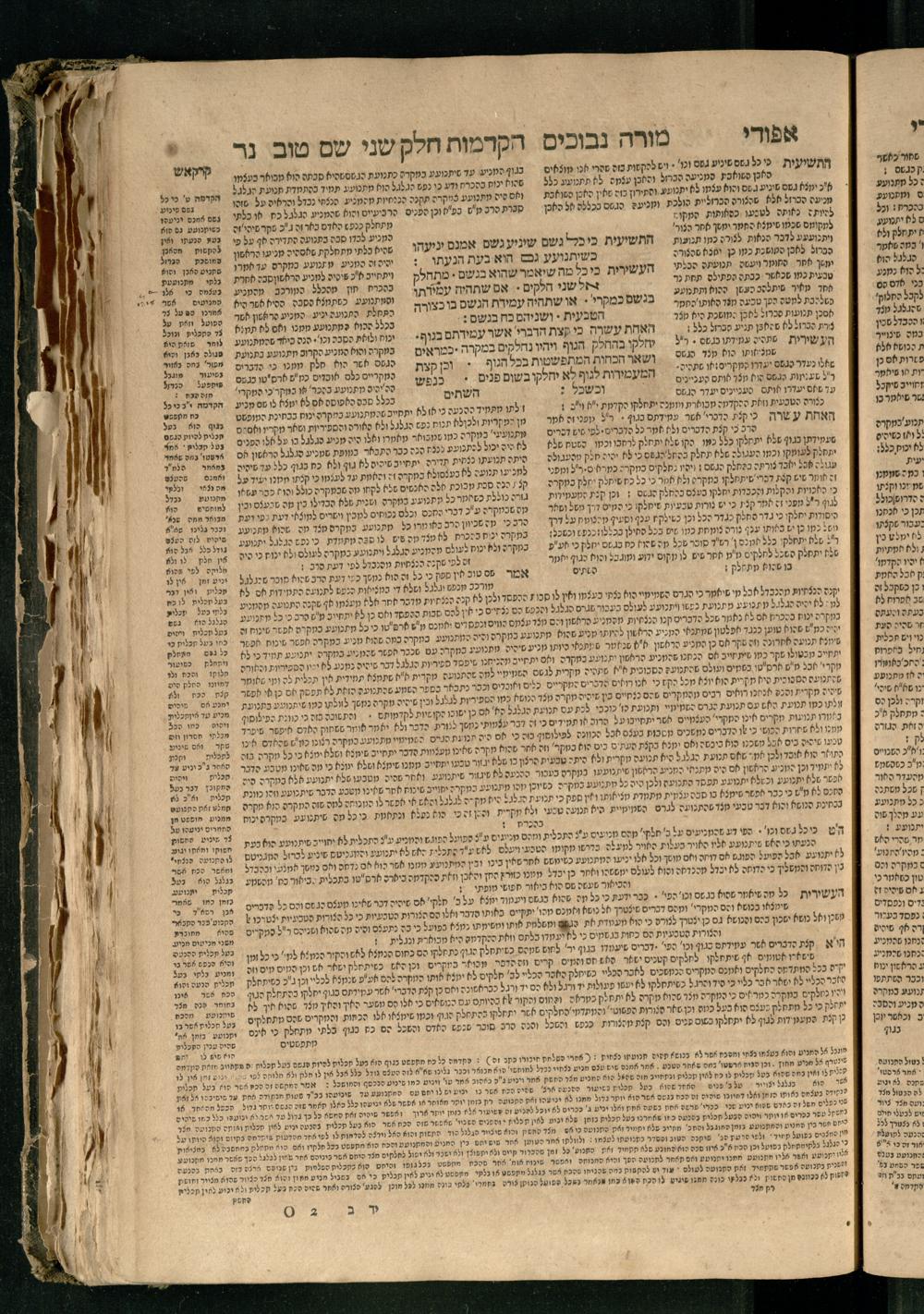 Moreh nevukhim = Doctor Perplexorum / le-ha-maʾor ha-gadol gaʾon Yiśraʾel ha-rav rabenu Mosheh bar Maimon ... u-perusho ... Shem Ṭov u-perush Efodi ... ṿe-hosafnu ... perush ... n. [Ibn] Ḳreśḳaś ... gam kaṿanat kol pereḳ ... ʿal daʿat ... he-Ḥarizi gam perush Milot zarot le-Ibn Tibon ... gam pesuḳe ha-Torah u-neviʾim u-ketuvim ... ʿal sidram ... hosafnu ʿal ha-rishonim le-hatsiv simanim ben maʾamarim she-be-moreh ...מורה נבוכים / להמאור הגדול גאון ישראל הרב רבינו משה בר מימון ... ופירושו שם טוב ופירוש אפודי ... והוספנו ... פירוש ן. [אבן] קרשקש ... גם כוונת כל פרק ... על דעת ... החריזי גם פירוש מלות זרות לאבן תבון ... גם פסוקי התורה ונביאים וכתובים ... על סדרם ... הוספנו על הראשונים להציב סימנים בין מאמרים שבמורה ...