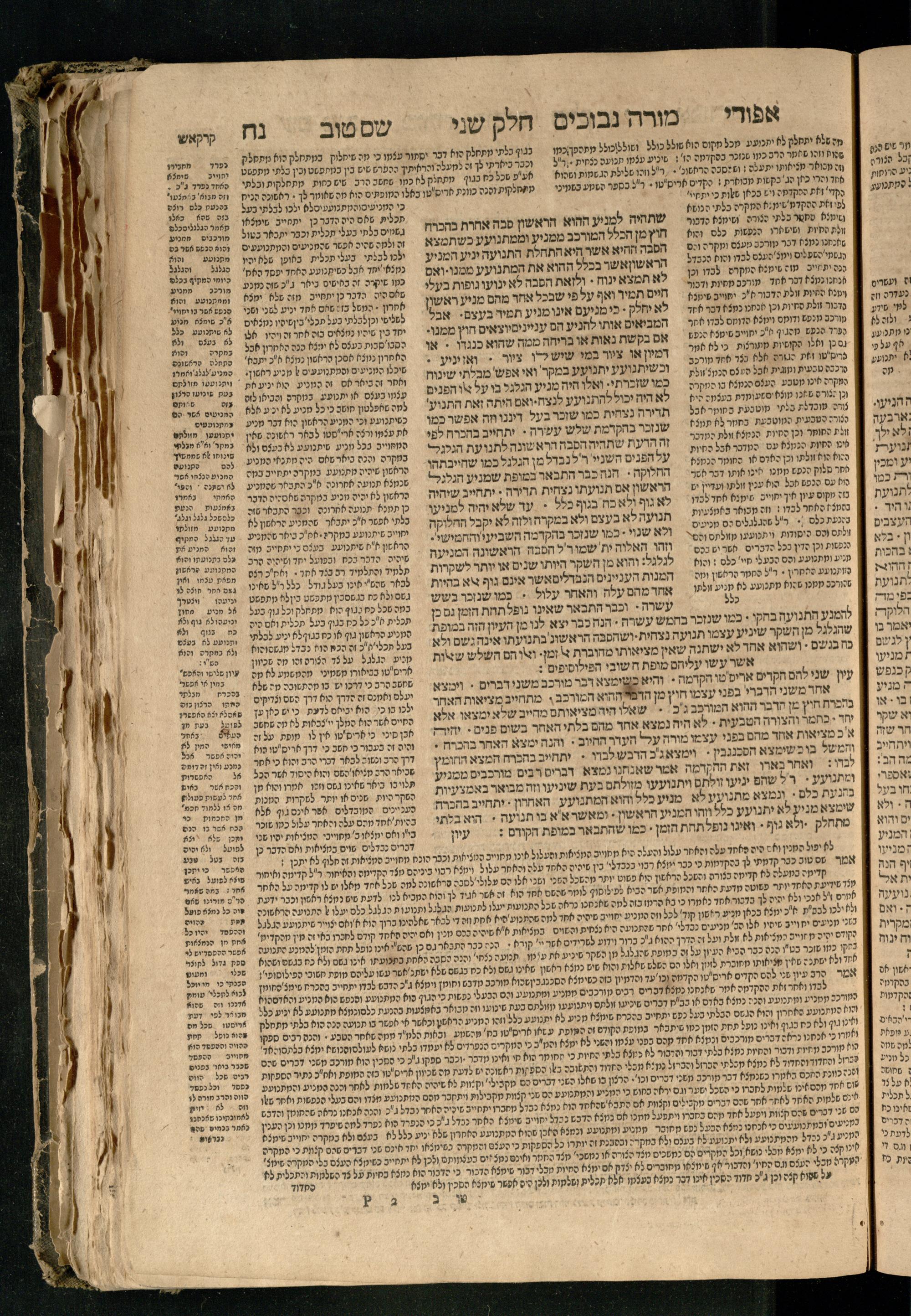 Moreh nevukhim = Doctor Perplexorum / le-ha-maʾor ha-gadol gaʾon Yiśraʾel ha-rav rabenu Mosheh bar Maimon ... u-perusho ... Shem Ṭov u-perush Efodi ... ṿe-hosafnu ... perush ... n. [Ibn] Ḳreśḳaś ... gam kaṿanat kol pereḳ ... ʿal daʿat ... he-Ḥarizi gam perush Milot zarot le-Ibn Tibon ... gam pesuḳe ha-Torah u-neviʾim u-ketuvim ... ʿal sidram ... hosafnu ʿal ha-rishonim le-hatsiv simanim ben maʾamarim she-be-moreh ...מורה נבוכים / להמאור הגדול גאון ישראל הרב רבינו משה בר מימון ... ופירושו שם טוב ופירוש אפודי ... והוספנו ... פירוש ן. [אבן] קרשקש ... גם כוונת כל פרק ... על דעת ... החריזי גם פירוש מלות זרות לאבן תבון ... גם פסוקי התורה ונביאים וכתובים ... על סדרם ... הוספנו על הראשונים להציב סימנים בין מאמרים שבמורה ...