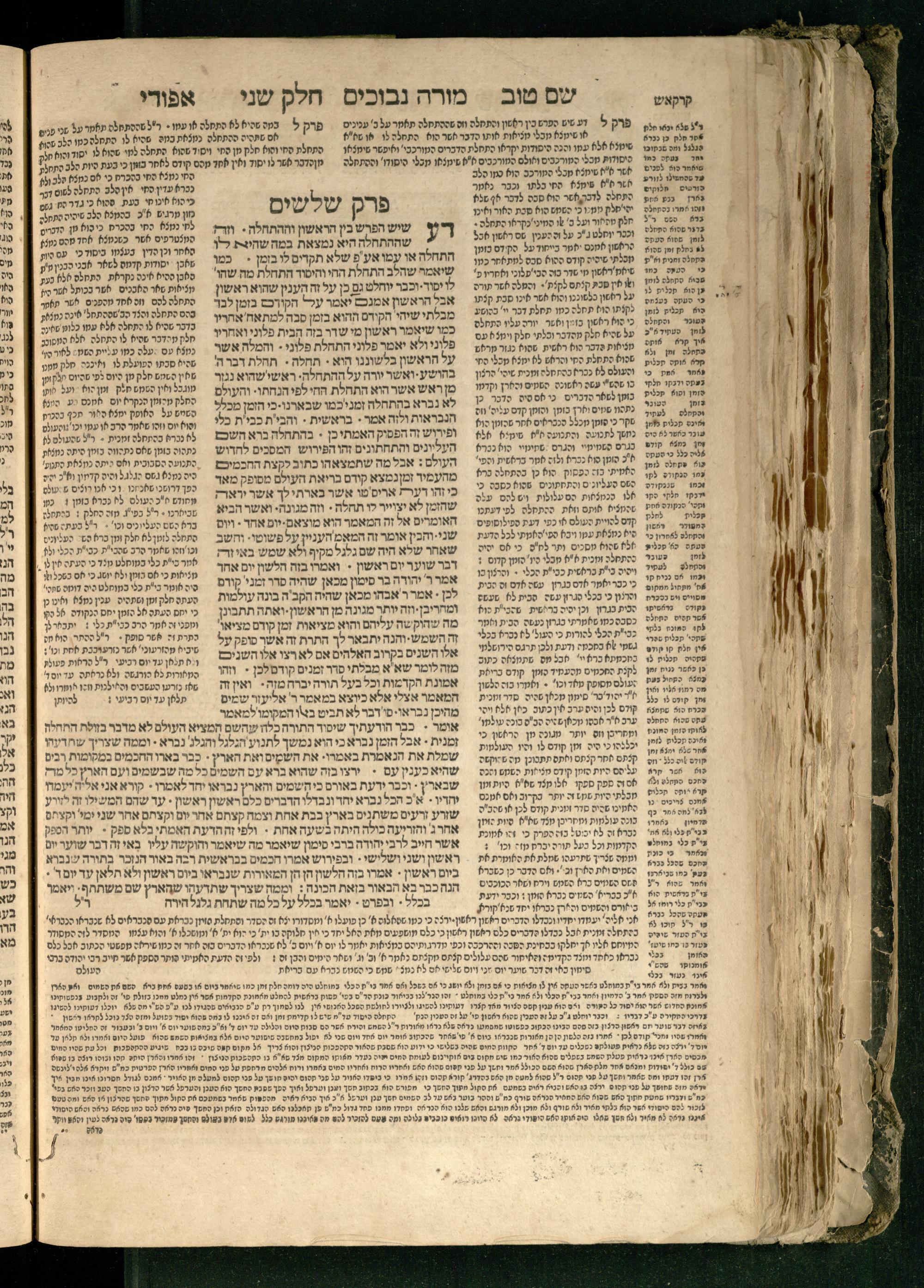 Moreh nevukhim = Doctor Perplexorum / le-ha-maʾor ha-gadol gaʾon Yiśraʾel ha-rav rabenu Mosheh bar Maimon ... u-perusho ... Shem Ṭov u-perush Efodi ... ṿe-hosafnu ... perush ... n. [Ibn] Ḳreśḳaś ... gam kaṿanat kol pereḳ ... ʿal daʿat ... he-Ḥarizi gam perush Milot zarot le-Ibn Tibon ... gam pesuḳe ha-Torah u-neviʾim u-ketuvim ... ʿal sidram ... hosafnu ʿal ha-rishonim le-hatsiv simanim ben maʾamarim she-be-moreh ...מורה נבוכים / להמאור הגדול גאון ישראל הרב רבינו משה בר מימון ... ופירושו שם טוב ופירוש אפודי ... והוספנו ... פירוש ן. [אבן] קרשקש ... גם כוונת כל פרק ... על דעת ... החריזי גם פירוש מלות זרות לאבן תבון ... גם פסוקי התורה ונביאים וכתובים ... על סדרם ... הוספנו על הראשונים להציב סימנים בין מאמרים שבמורה ...