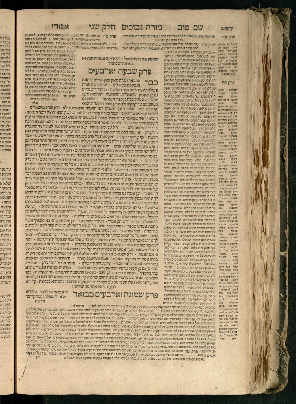 Moreh nevukhim = Doctor Perplexorum / le-ha-maʾor ha-gadol gaʾon Yiśraʾel ha-rav rabenu Mosheh bar Maimon ... u-perusho ... Shem Ṭov u-perush Efodi ... ṿe-hosafnu ... perush ... n. [Ibn] Ḳreśḳaś ... gam kaṿanat kol pereḳ ... ʿal daʿat ... he-Ḥarizi gam perush Milot zarot le-Ibn Tibon ... gam pesuḳe ha-Torah u-neviʾim u-ketuvim ... ʿal sidram ... hosafnu ʿal ha-rishonim le-hatsiv simanim ben maʾamarim she-be-moreh ...מורה נבוכים / להמאור הגדול גאון ישראל הרב רבינו משה בר מימון ... ופירושו שם טוב ופירוש אפודי ... והוספנו ... פירוש ן. [אבן] קרשקש ... גם כוונת כל פרק ... על דעת ... החריזי גם פירוש מלות זרות לאבן תבון ... גם פסוקי התורה ונביאים וכתובים ... על סדרם ... הוספנו על הראשונים להציב סימנים בין מאמרים שבמורה ...