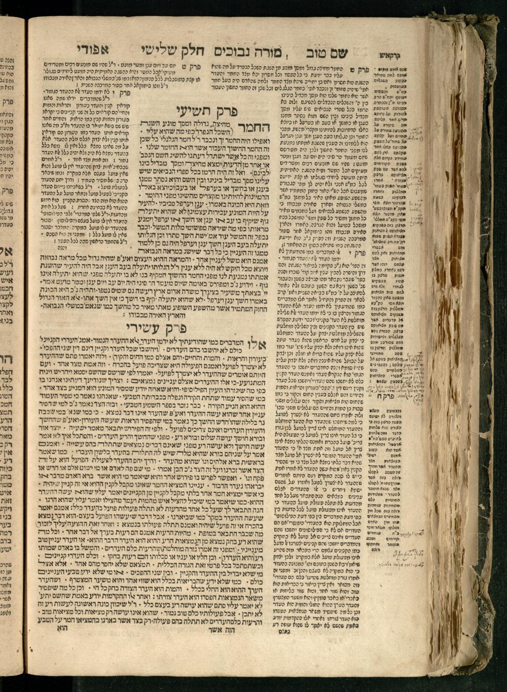 Moreh nevukhim = Doctor Perplexorum / le-ha-maʾor ha-gadol gaʾon Yiśraʾel ha-rav rabenu Mosheh bar Maimon ... u-perusho ... Shem Ṭov u-perush Efodi ... ṿe-hosafnu ... perush ... n. [Ibn] Ḳreśḳaś ... gam kaṿanat kol pereḳ ... ʿal daʿat ... he-Ḥarizi gam perush Milot zarot le-Ibn Tibon ... gam pesuḳe ha-Torah u-neviʾim u-ketuvim ... ʿal sidram ... hosafnu ʿal ha-rishonim le-hatsiv simanim ben maʾamarim she-be-moreh ...מורה נבוכים / להמאור הגדול גאון ישראל הרב רבינו משה בר מימון ... ופירושו שם טוב ופירוש אפודי ... והוספנו ... פירוש ן. [אבן] קרשקש ... גם כוונת כל פרק ... על דעת ... החריזי גם פירוש מלות זרות לאבן תבון ... גם פסוקי התורה ונביאים וכתובים ... על סדרם ... הוספנו על הראשונים להציב סימנים בין מאמרים שבמורה ...
