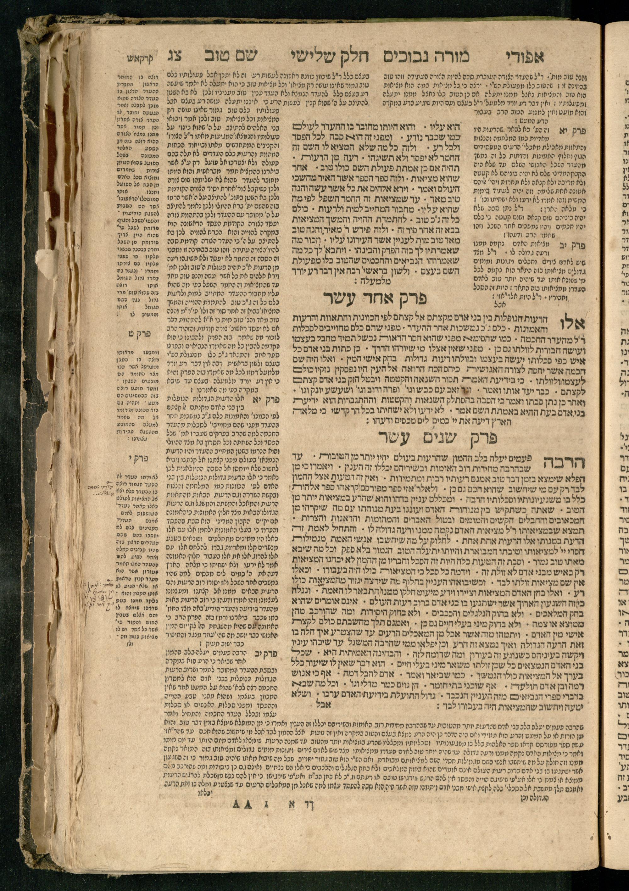 Moreh nevukhim = Doctor Perplexorum / le-ha-maʾor ha-gadol gaʾon Yiśraʾel ha-rav rabenu Mosheh bar Maimon ... u-perusho ... Shem Ṭov u-perush Efodi ... ṿe-hosafnu ... perush ... n. [Ibn] Ḳreśḳaś ... gam kaṿanat kol pereḳ ... ʿal daʿat ... he-Ḥarizi gam perush Milot zarot le-Ibn Tibon ... gam pesuḳe ha-Torah u-neviʾim u-ketuvim ... ʿal sidram ... hosafnu ʿal ha-rishonim le-hatsiv simanim ben maʾamarim she-be-moreh ...מורה נבוכים / להמאור הגדול גאון ישראל הרב רבינו משה בר מימון ... ופירושו שם טוב ופירוש אפודי ... והוספנו ... פירוש ן. [אבן] קרשקש ... גם כוונת כל פרק ... על דעת ... החריזי גם פירוש מלות זרות לאבן תבון ... גם פסוקי התורה ונביאים וכתובים ... על סדרם ... הוספנו על הראשונים להציב סימנים בין מאמרים שבמורה ...
