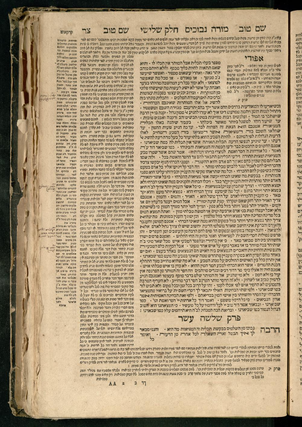 Moreh nevukhim = Doctor Perplexorum / le-ha-maʾor ha-gadol gaʾon Yiśraʾel ha-rav rabenu Mosheh bar Maimon ... u-perusho ... Shem Ṭov u-perush Efodi ... ṿe-hosafnu ... perush ... n. [Ibn] Ḳreśḳaś ... gam kaṿanat kol pereḳ ... ʿal daʿat ... he-Ḥarizi gam perush Milot zarot le-Ibn Tibon ... gam pesuḳe ha-Torah u-neviʾim u-ketuvim ... ʿal sidram ... hosafnu ʿal ha-rishonim le-hatsiv simanim ben maʾamarim she-be-moreh ...מורה נבוכים / להמאור הגדול גאון ישראל הרב רבינו משה בר מימון ... ופירושו שם טוב ופירוש אפודי ... והוספנו ... פירוש ן. [אבן] קרשקש ... גם כוונת כל פרק ... על דעת ... החריזי גם פירוש מלות זרות לאבן תבון ... גם פסוקי התורה ונביאים וכתובים ... על סדרם ... הוספנו על הראשונים להציב סימנים בין מאמרים שבמורה ...