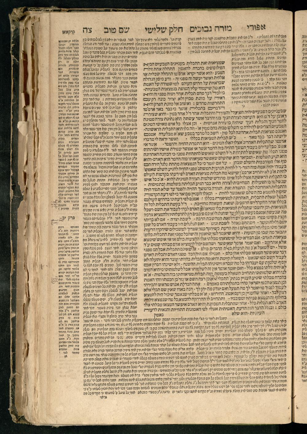 Moreh nevukhim = Doctor Perplexorum / le-ha-maʾor ha-gadol gaʾon Yiśraʾel ha-rav rabenu Mosheh bar Maimon ... u-perusho ... Shem Ṭov u-perush Efodi ... ṿe-hosafnu ... perush ... n. [Ibn] Ḳreśḳaś ... gam kaṿanat kol pereḳ ... ʿal daʿat ... he-Ḥarizi gam perush Milot zarot le-Ibn Tibon ... gam pesuḳe ha-Torah u-neviʾim u-ketuvim ... ʿal sidram ... hosafnu ʿal ha-rishonim le-hatsiv simanim ben maʾamarim she-be-moreh ...מורה נבוכים / להמאור הגדול גאון ישראל הרב רבינו משה בר מימון ... ופירושו שם טוב ופירוש אפודי ... והוספנו ... פירוש ן. [אבן] קרשקש ... גם כוונת כל פרק ... על דעת ... החריזי גם פירוש מלות זרות לאבן תבון ... גם פסוקי התורה ונביאים וכתובים ... על סדרם ... הוספנו על הראשונים להציב סימנים בין מאמרים שבמורה ...