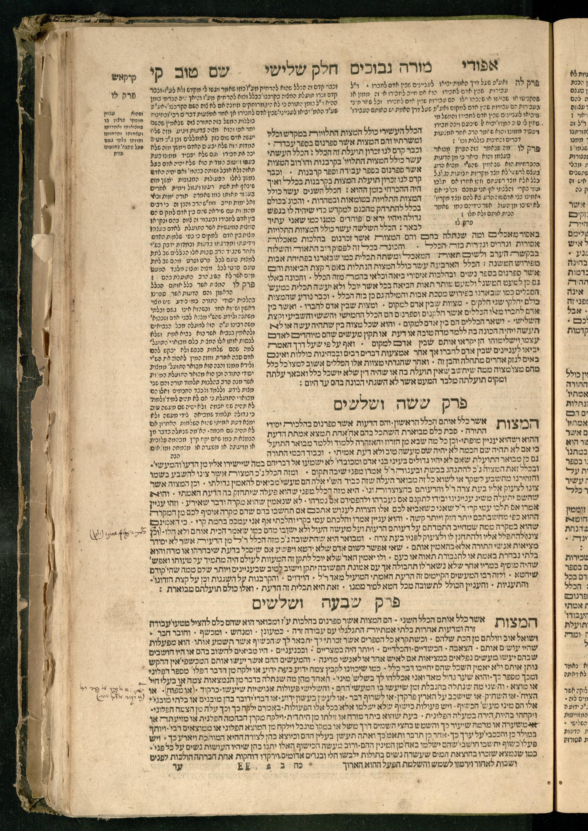 Moreh nevukhim = Doctor Perplexorum / le-ha-maʾor ha-gadol gaʾon Yiśraʾel ha-rav rabenu Mosheh bar Maimon ... u-perusho ... Shem Ṭov u-perush Efodi ... ṿe-hosafnu ... perush ... n. [Ibn] Ḳreśḳaś ... gam kaṿanat kol pereḳ ... ʿal daʿat ... he-Ḥarizi gam perush Milot zarot le-Ibn Tibon ... gam pesuḳe ha-Torah u-neviʾim u-ketuvim ... ʿal sidram ... hosafnu ʿal ha-rishonim le-hatsiv simanim ben maʾamarim she-be-moreh ...מורה נבוכים / להמאור הגדול גאון ישראל הרב רבינו משה בר מימון ... ופירושו שם טוב ופירוש אפודי ... והוספנו ... פירוש ן. [אבן] קרשקש ... גם כוונת כל פרק ... על דעת ... החריזי גם פירוש מלות זרות לאבן תבון ... גם פסוקי התורה ונביאים וכתובים ... על סדרם ... הוספנו על הראשונים להציב סימנים בין מאמרים שבמורה ...
