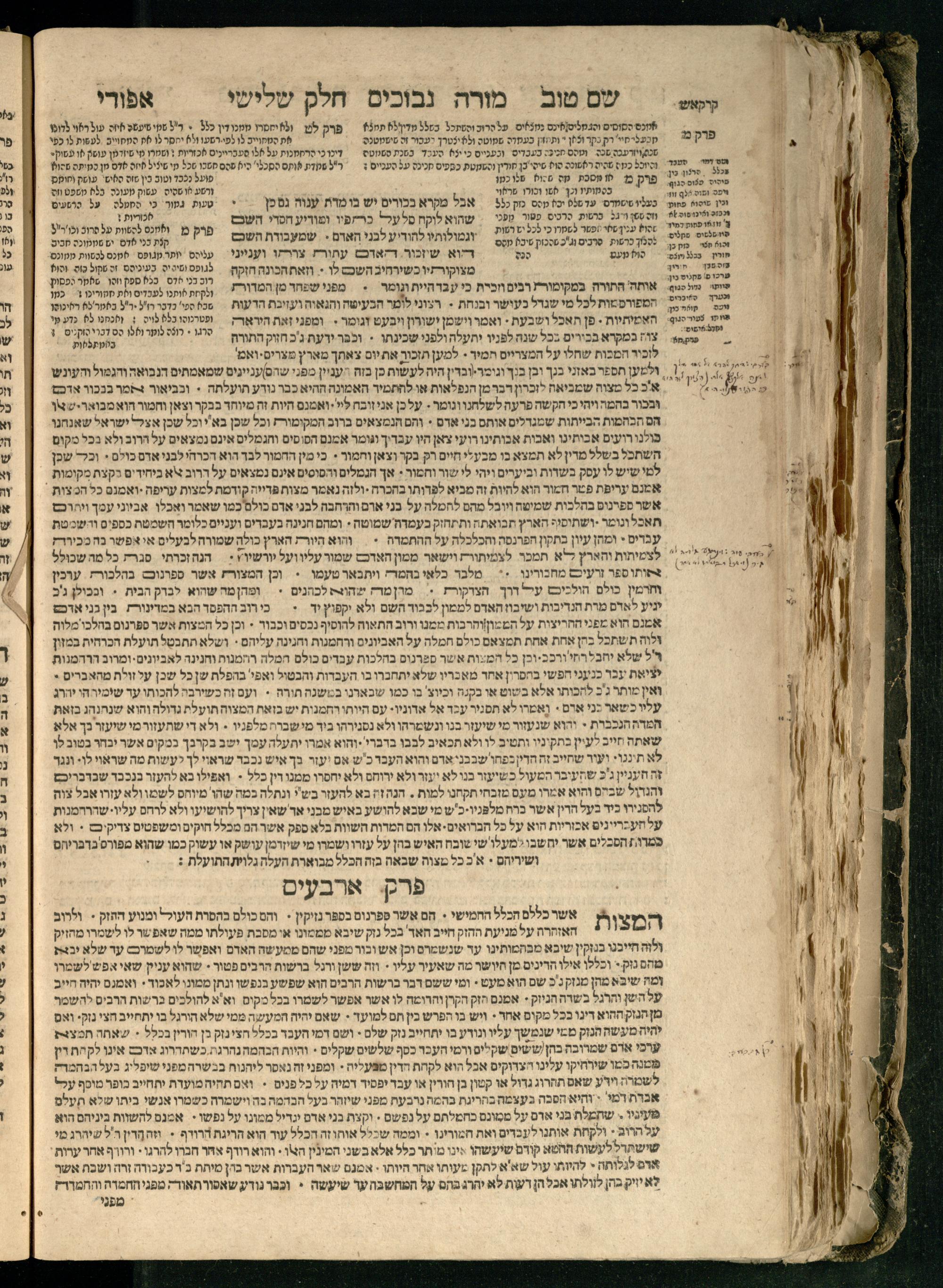 Moreh nevukhim = Doctor Perplexorum / le-ha-maʾor ha-gadol gaʾon Yiśraʾel ha-rav rabenu Mosheh bar Maimon ... u-perusho ... Shem Ṭov u-perush Efodi ... ṿe-hosafnu ... perush ... n. [Ibn] Ḳreśḳaś ... gam kaṿanat kol pereḳ ... ʿal daʿat ... he-Ḥarizi gam perush Milot zarot le-Ibn Tibon ... gam pesuḳe ha-Torah u-neviʾim u-ketuvim ... ʿal sidram ... hosafnu ʿal ha-rishonim le-hatsiv simanim ben maʾamarim she-be-moreh ...מורה נבוכים / להמאור הגדול גאון ישראל הרב רבינו משה בר מימון ... ופירושו שם טוב ופירוש אפודי ... והוספנו ... פירוש ן. [אבן] קרשקש ... גם כוונת כל פרק ... על דעת ... החריזי גם פירוש מלות זרות לאבן תבון ... גם פסוקי התורה ונביאים וכתובים ... על סדרם ... הוספנו על הראשונים להציב סימנים בין מאמרים שבמורה ...