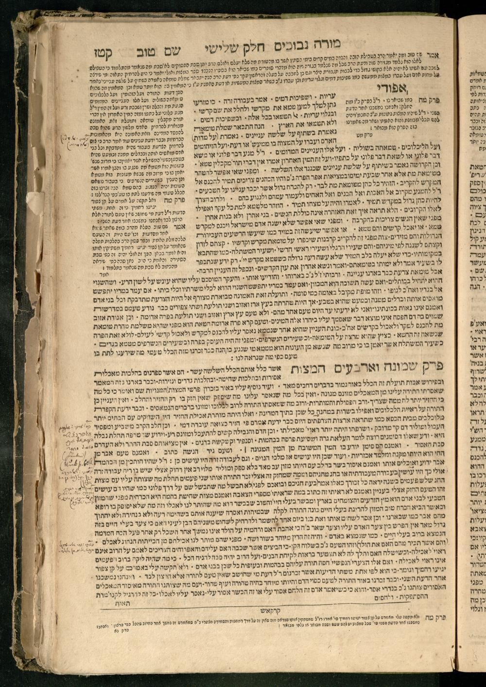 Moreh nevukhim = Doctor Perplexorum / le-ha-maʾor ha-gadol gaʾon Yiśraʾel ha-rav rabenu Mosheh bar Maimon ... u-perusho ... Shem Ṭov u-perush Efodi ... ṿe-hosafnu ... perush ... n. [Ibn] Ḳreśḳaś ... gam kaṿanat kol pereḳ ... ʿal daʿat ... he-Ḥarizi gam perush Milot zarot le-Ibn Tibon ... gam pesuḳe ha-Torah u-neviʾim u-ketuvim ... ʿal sidram ... hosafnu ʿal ha-rishonim le-hatsiv simanim ben maʾamarim she-be-moreh ...מורה נבוכים / להמאור הגדול גאון ישראל הרב רבינו משה בר מימון ... ופירושו שם טוב ופירוש אפודי ... והוספנו ... פירוש ן. [אבן] קרשקש ... גם כוונת כל פרק ... על דעת ... החריזי גם פירוש מלות זרות לאבן תבון ... גם פסוקי התורה ונביאים וכתובים ... על סדרם ... הוספנו על הראשונים להציב סימנים בין מאמרים שבמורה ...