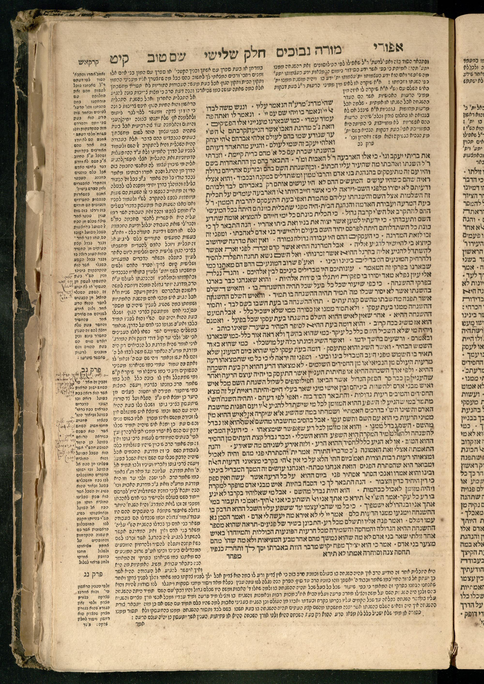 Moreh nevukhim = Doctor Perplexorum / le-ha-maʾor ha-gadol gaʾon Yiśraʾel ha-rav rabenu Mosheh bar Maimon ... u-perusho ... Shem Ṭov u-perush Efodi ... ṿe-hosafnu ... perush ... n. [Ibn] Ḳreśḳaś ... gam kaṿanat kol pereḳ ... ʿal daʿat ... he-Ḥarizi gam perush Milot zarot le-Ibn Tibon ... gam pesuḳe ha-Torah u-neviʾim u-ketuvim ... ʿal sidram ... hosafnu ʿal ha-rishonim le-hatsiv simanim ben maʾamarim she-be-moreh ...מורה נבוכים / להמאור הגדול גאון ישראל הרב רבינו משה בר מימון ... ופירושו שם טוב ופירוש אפודי ... והוספנו ... פירוש ן. [אבן] קרשקש ... גם כוונת כל פרק ... על דעת ... החריזי גם פירוש מלות זרות לאבן תבון ... גם פסוקי התורה ונביאים וכתובים ... על סדרם ... הוספנו על הראשונים להציב סימנים בין מאמרים שבמורה ...