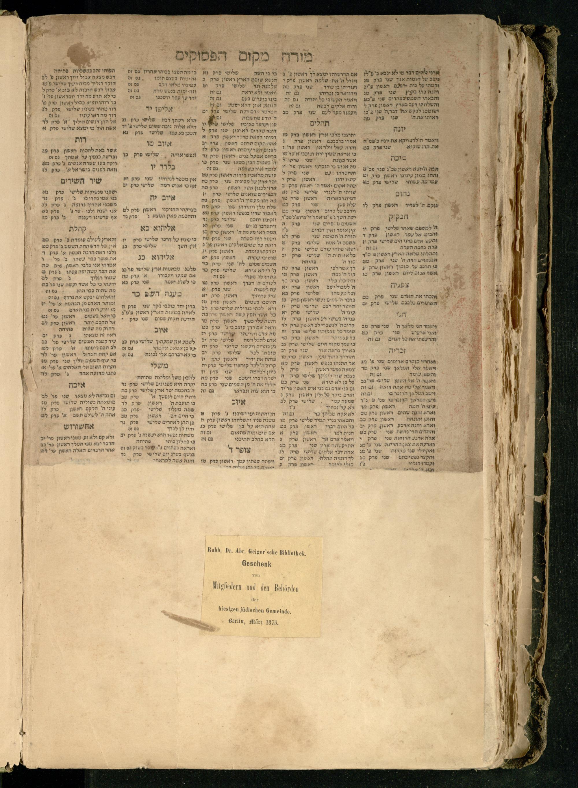 Moreh nevukhim = Doctor Perplexorum / le-ha-maʾor ha-gadol gaʾon Yiśraʾel ha-rav rabenu Mosheh bar Maimon ... u-perusho ... Shem Ṭov u-perush Efodi ... ṿe-hosafnu ... perush ... n. [Ibn] Ḳreśḳaś ... gam kaṿanat kol pereḳ ... ʿal daʿat ... he-Ḥarizi gam perush Milot zarot le-Ibn Tibon ... gam pesuḳe ha-Torah u-neviʾim u-ketuvim ... ʿal sidram ... hosafnu ʿal ha-rishonim le-hatsiv simanim ben maʾamarim she-be-moreh ...מורה נבוכים / להמאור הגדול גאון ישראל הרב רבינו משה בר מימון ... ופירושו שם טוב ופירוש אפודי ... והוספנו ... פירוש ן. [אבן] קרשקש ... גם כוונת כל פרק ... על דעת ... החריזי גם פירוש מלות זרות לאבן תבון ... גם פסוקי התורה ונביאים וכתובים ... על סדרם ... הוספנו על הראשונים להציב סימנים בין מאמרים שבמורה ...