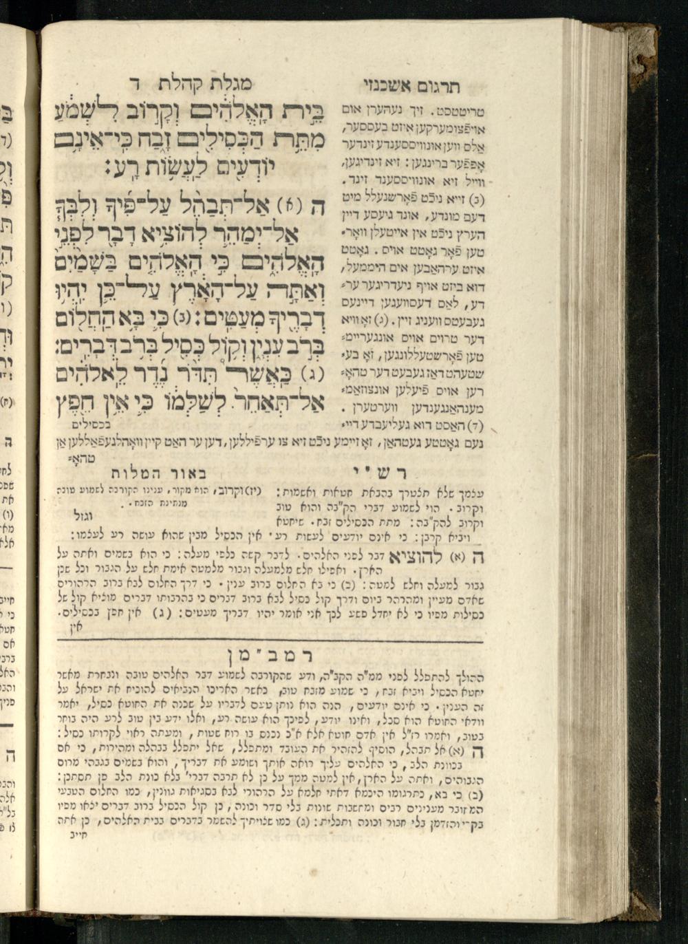 20 (1833) Ḥamesh megilot : ʿim Perush Rashi targum Ashkenazi u-veʾur : hugah bi-sheḳidah rabah u-ve-ʿiyun gadol ṿe-nosaf mavo ha-sheni ʿal megilat Rut, Ekhah, Ḳohelet, ṿe-Ester ; ṿe-ha-meʿamer ʿal kol megilah u-megilah / me-et ha-ḥakham ha-medaḳdeḳ mo.h.r.R. Ṿolf Meʾir (moreh lashon ʿIvri be-vet ḥinukh ha-normali asher be-Prag) ; ṿa-ani ha-madpis hosafti gam targum u-veʾur ʿal milot be-laʿaz ha-nimtsaʾot be-Fe. Rashi z.l.20 (1833) חמש מגילות : עם פירוש רש״י תרגום אשכנזי ובאור : הוגה בשקידה רבה ובעיון גדול ונוסף מבוא השני על מגילת רות, איכה, קהלת, ואסתר; והמעמר על כל מגלה ומגלה / מאת החכם המדקדק מוהר״ר וואלף מאיר (מורה לשון עברי בבית חנוך הנארמאלי אשר בפראג) ; ואני המדפיס הוספתי גם תרגום ובאור על מלות בלע"ז הנמצאות בפירוש״י ז״ל