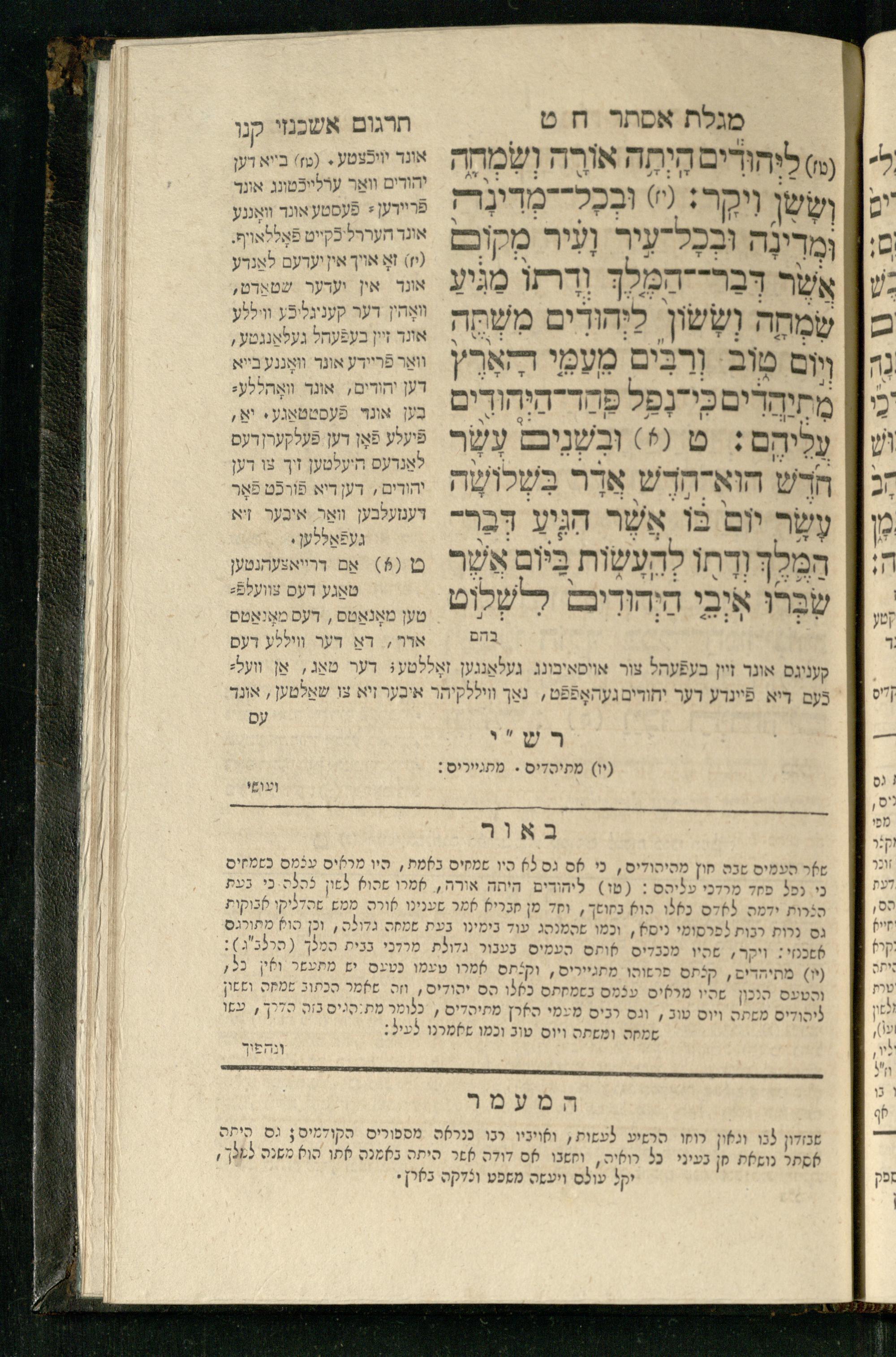 20 (1833) Ḥamesh megilot : ʿim Perush Rashi targum Ashkenazi u-veʾur : hugah bi-sheḳidah rabah u-ve-ʿiyun gadol ṿe-nosaf mavo ha-sheni ʿal megilat Rut, Ekhah, Ḳohelet, ṿe-Ester ; ṿe-ha-meʿamer ʿal kol megilah u-megilah / me-et ha-ḥakham ha-medaḳdeḳ mo.h.r.R. Ṿolf Meʾir (moreh lashon ʿIvri be-vet ḥinukh ha-normali asher be-Prag) ; ṿa-ani ha-madpis hosafti gam targum u-veʾur ʿal milot be-laʿaz ha-nimtsaʾot be-Fe. Rashi z.l.20 (1833) חמש מגילות : עם פירוש רש״י תרגום אשכנזי ובאור : הוגה בשקידה רבה ובעיון גדול ונוסף מבוא השני על מגילת רות, איכה, קהלת, ואסתר; והמעמר על כל מגלה ומגלה / מאת החכם המדקדק מוהר״ר וואלף מאיר (מורה לשון עברי בבית חנוך הנארמאלי אשר בפראג) ; ואני המדפיס הוספתי גם תרגום ובאור על מלות בלע"ז הנמצאות בפירוש״י ז״ל