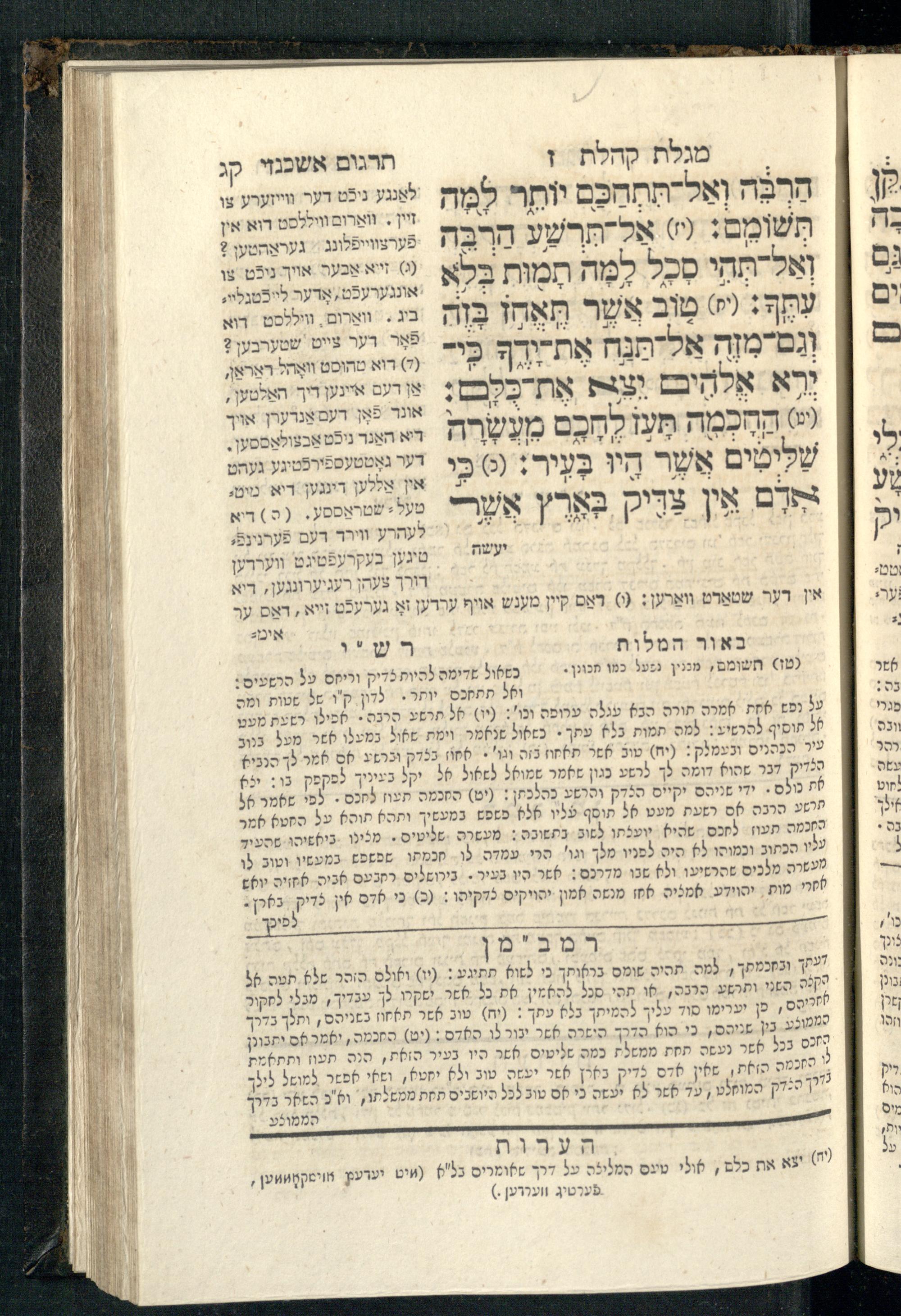 20 (1833) Ḥamesh megilot : ʿim Perush Rashi targum Ashkenazi u-veʾur : hugah bi-sheḳidah rabah u-ve-ʿiyun gadol ṿe-nosaf mavo ha-sheni ʿal megilat Rut, Ekhah, Ḳohelet, ṿe-Ester ; ṿe-ha-meʿamer ʿal kol megilah u-megilah / me-et ha-ḥakham ha-medaḳdeḳ mo.h.r.R. Ṿolf Meʾir (moreh lashon ʿIvri be-vet ḥinukh ha-normali asher be-Prag) ; ṿa-ani ha-madpis hosafti gam targum u-veʾur ʿal milot be-laʿaz ha-nimtsaʾot be-Fe. Rashi z.l.20 (1833) חמש מגילות : עם פירוש רש״י תרגום אשכנזי ובאור : הוגה בשקידה רבה ובעיון גדול ונוסף מבוא השני על מגילת רות, איכה, קהלת, ואסתר; והמעמר על כל מגלה ומגלה / מאת החכם המדקדק מוהר״ר וואלף מאיר (מורה לשון עברי בבית חנוך הנארמאלי אשר בפראג) ; ואני המדפיס הוספתי גם תרגום ובאור על מלות בלע"ז הנמצאות בפירוש״י ז״ל