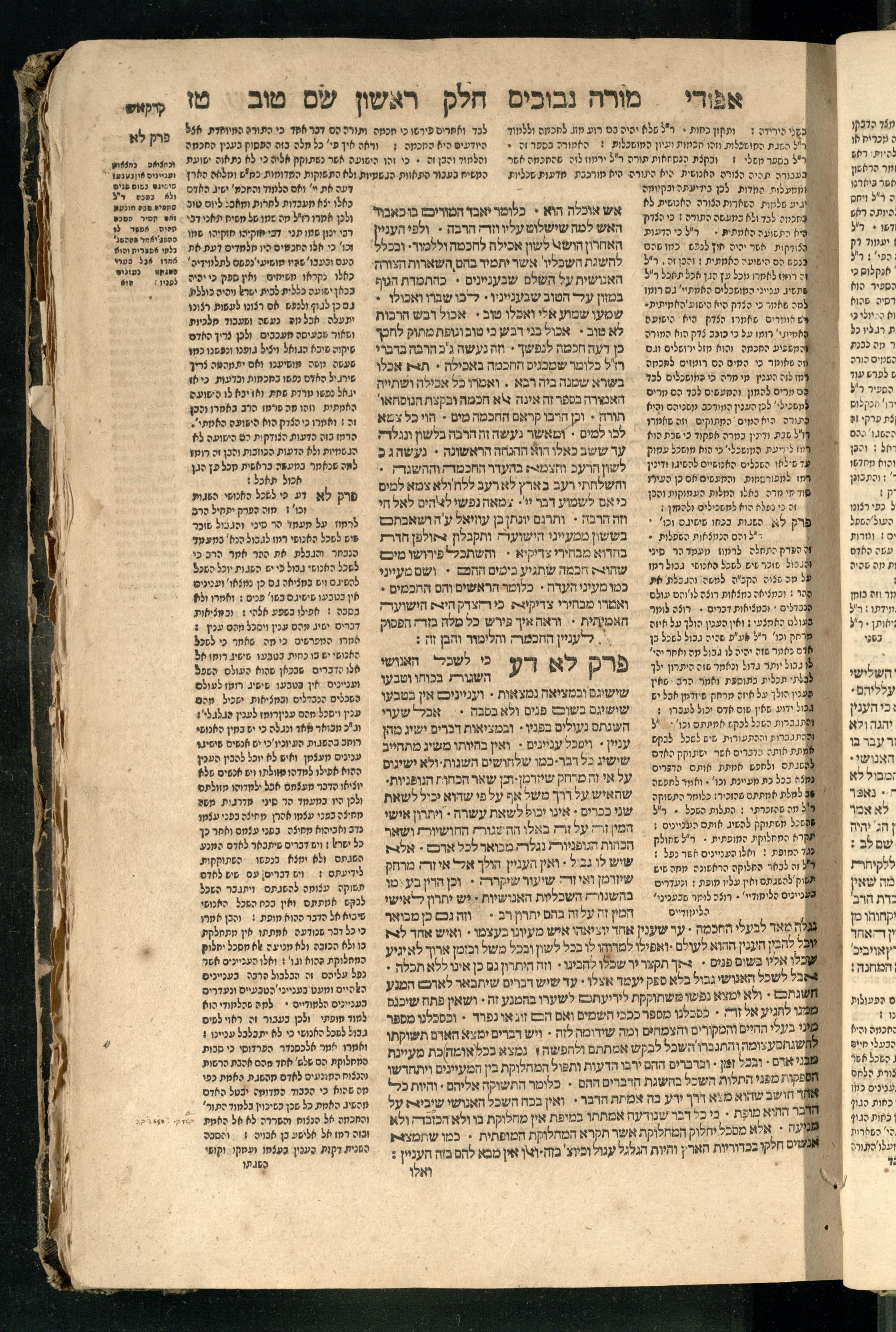 Moreh nevukhim = Doctor Perplexorum / le-ha-maʾor ha-gadol gaʾon Yiśraʾel ha-rav rabenu Mosheh bar Maimon ... u-perusho ... Shem Ṭov u-perush Efodi ... ṿe-hosafnu ... perush ... n. [Ibn] Ḳreśḳaś ... gam kaṿanat kol pereḳ ... ʿal daʿat ... he-Ḥarizi gam perush Milot zarot le-Ibn Tibon ... gam pesuḳe ha-Torah u-neviʾim u-ketuvim ... ʿal sidram ... hosafnu ʿal ha-rishonim le-hatsiv simanim ben maʾamarim she-be-moreh ...מורה נבוכים / להמאור הגדול גאון ישראל הרב רבינו משה בר מימון ... ופירושו שם טוב ופירוש אפודי ... והוספנו ... פירוש ן. [אבן] קרשקש ... גם כוונת כל פרק ... על דעת ... החריזי גם פירוש מלות זרות לאבן תבון ... גם פסוקי התורה ונביאים וכתובים ... על סדרם ... הוספנו על הראשונים להציב סימנים בין מאמרים שבמורה ...