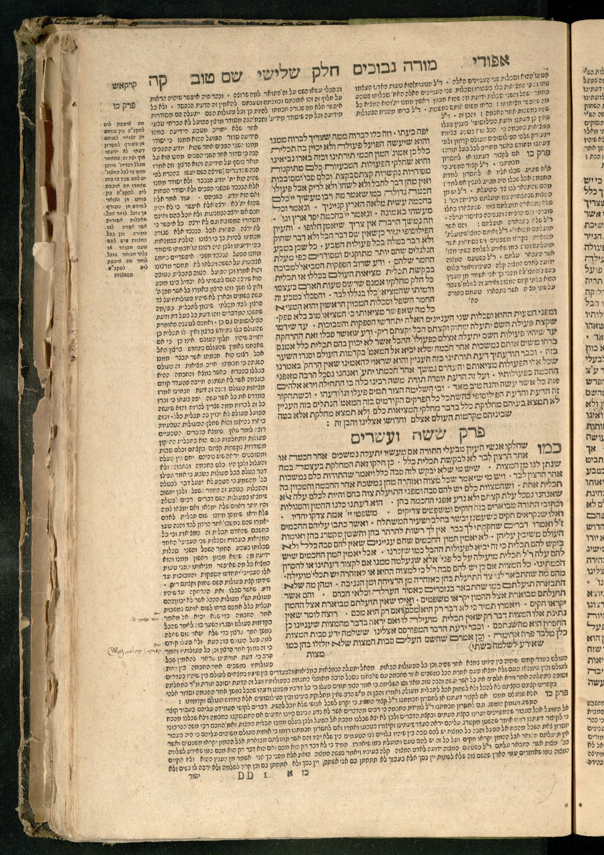 Moreh nevukhim = Doctor Perplexorum / le-ha-maʾor ha-gadol gaʾon Yiśraʾel ha-rav rabenu Mosheh bar Maimon ... u-perusho ... Shem Ṭov u-perush Efodi ... ṿe-hosafnu ... perush ... n. [Ibn] Ḳreśḳaś ... gam kaṿanat kol pereḳ ... ʿal daʿat ... he-Ḥarizi gam perush Milot zarot le-Ibn Tibon ... gam pesuḳe ha-Torah u-neviʾim u-ketuvim ... ʿal sidram ... hosafnu ʿal ha-rishonim le-hatsiv simanim ben maʾamarim she-be-moreh ...מורה נבוכים / להמאור הגדול גאון ישראל הרב רבינו משה בר מימון ... ופירושו שם טוב ופירוש אפודי ... והוספנו ... פירוש ן. [אבן] קרשקש ... גם כוונת כל פרק ... על דעת ... החריזי גם פירוש מלות זרות לאבן תבון ... גם פסוקי התורה ונביאים וכתובים ... על סדרם ... הוספנו על הראשונים להציב סימנים בין מאמרים שבמורה ...