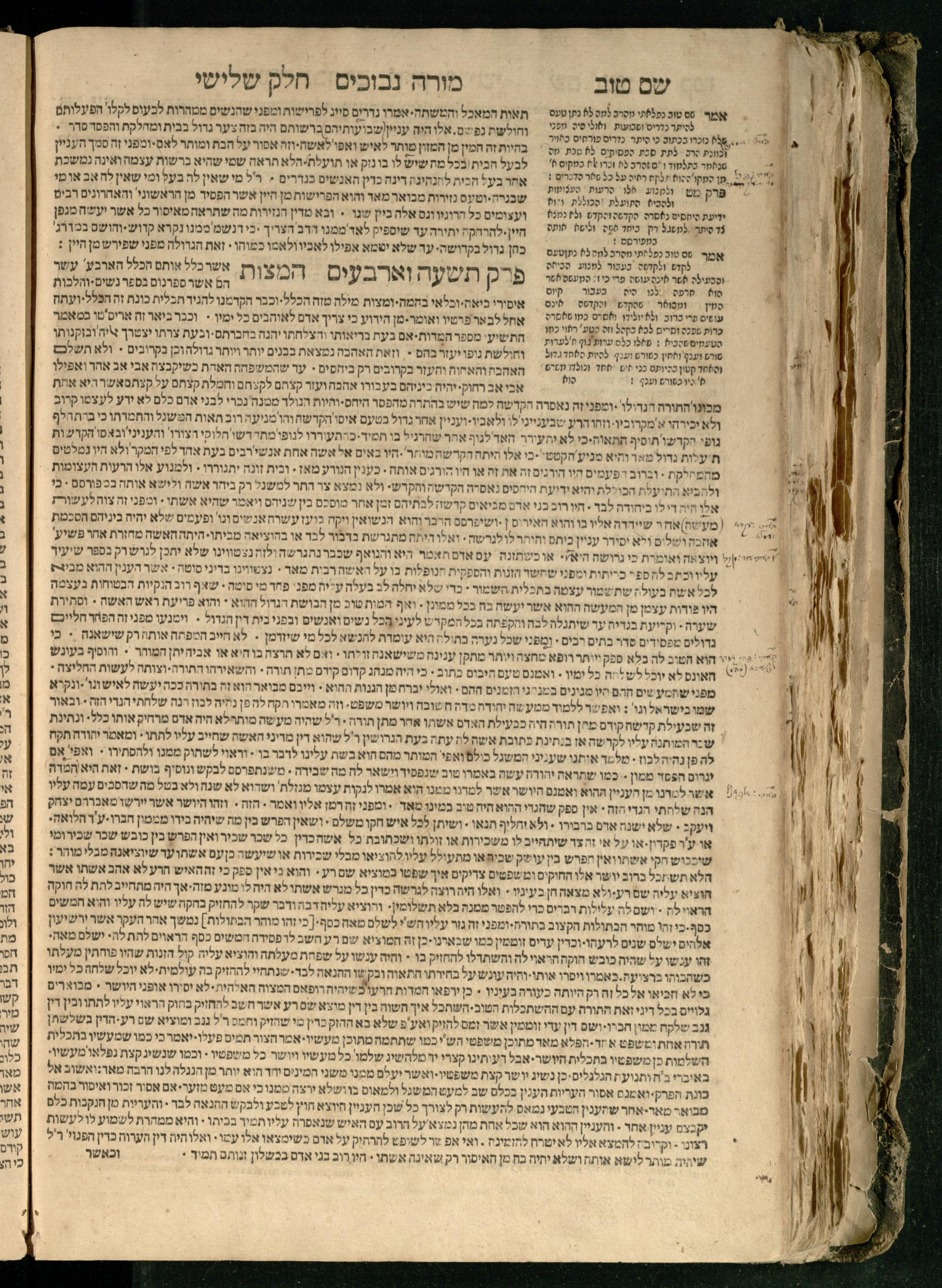 Moreh nevukhim = Doctor Perplexorum / le-ha-maʾor ha-gadol gaʾon Yiśraʾel ha-rav rabenu Mosheh bar Maimon ... u-perusho ... Shem Ṭov u-perush Efodi ... ṿe-hosafnu ... perush ... n. [Ibn] Ḳreśḳaś ... gam kaṿanat kol pereḳ ... ʿal daʿat ... he-Ḥarizi gam perush Milot zarot le-Ibn Tibon ... gam pesuḳe ha-Torah u-neviʾim u-ketuvim ... ʿal sidram ... hosafnu ʿal ha-rishonim le-hatsiv simanim ben maʾamarim she-be-moreh ...מורה נבוכים / להמאור הגדול גאון ישראל הרב רבינו משה בר מימון ... ופירושו שם טוב ופירוש אפודי ... והוספנו ... פירוש ן. [אבן] קרשקש ... גם כוונת כל פרק ... על דעת ... החריזי גם פירוש מלות זרות לאבן תבון ... גם פסוקי התורה ונביאים וכתובים ... על סדרם ... הוספנו על הראשונים להציב סימנים בין מאמרים שבמורה ...
