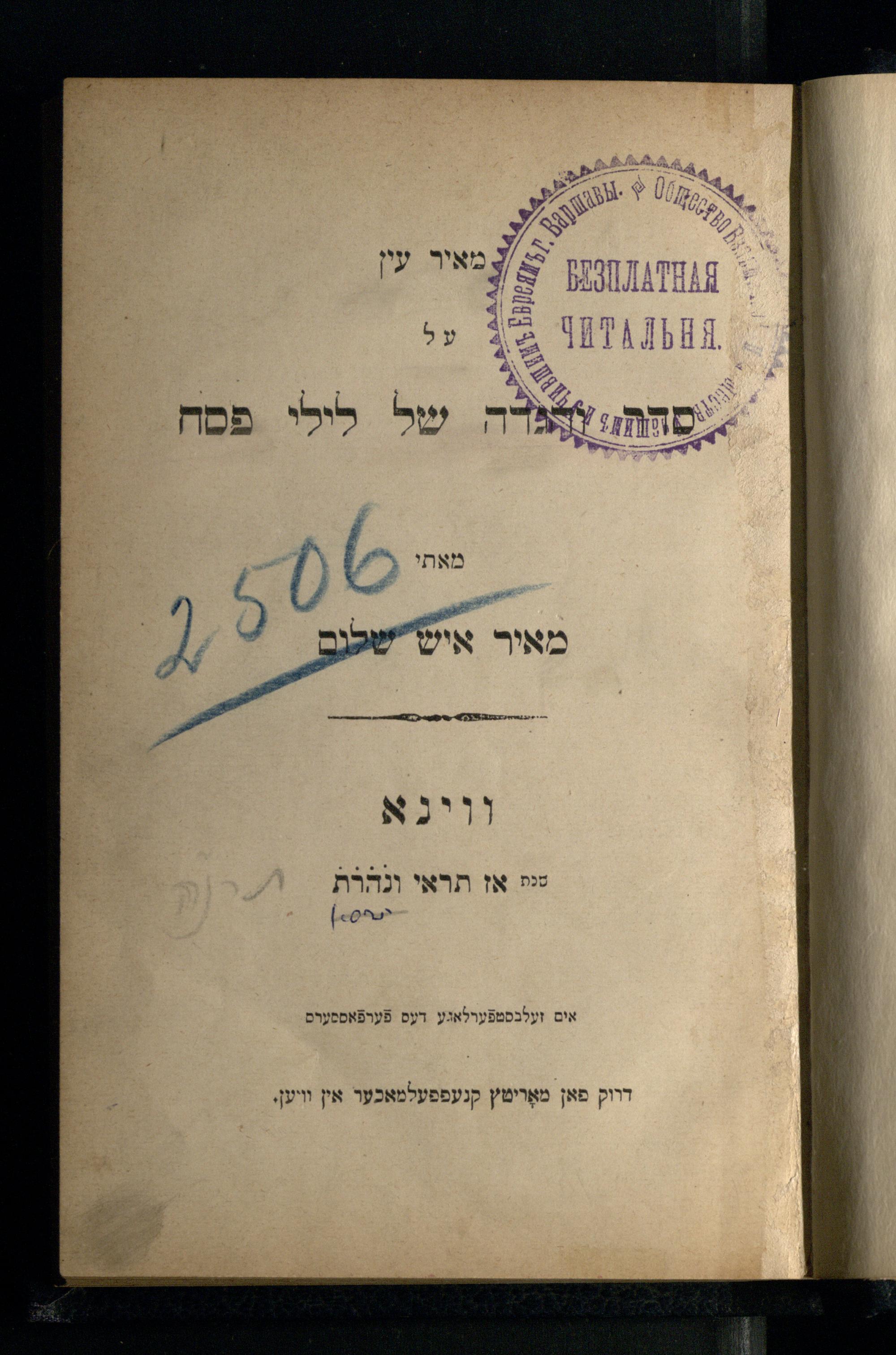 Meʾir ʿayin : ʿal Seder ṿe-hagadah shel lele Pesaḥ / me-iti Meʾir Ish Shalomמאיר עין : על סדר והגדה של לילי פסח / מאתי מאיר איש שלום