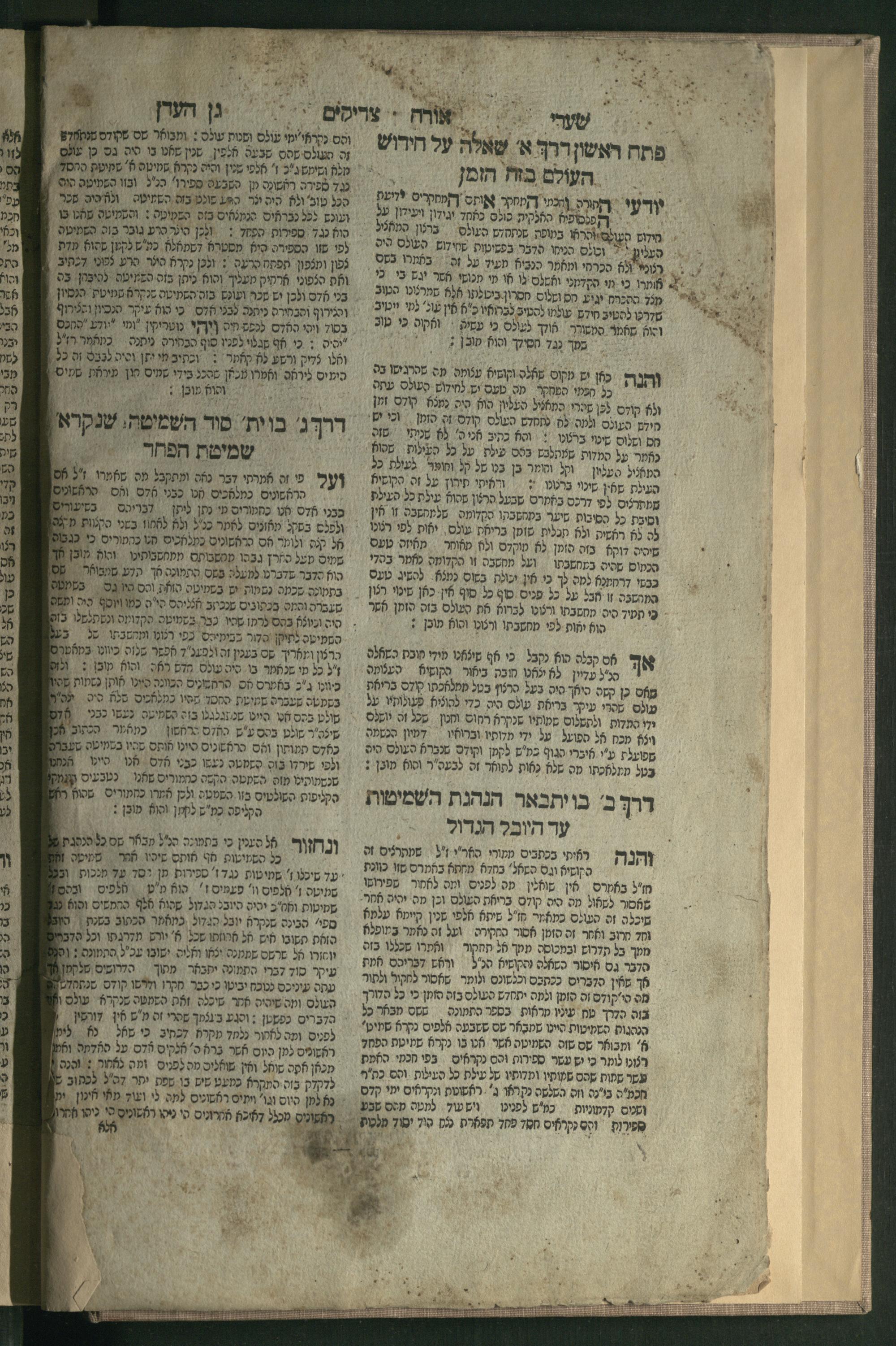 Sefer Shaʿar Gan ʿeden : ṿe-zot torat ha-adam ha-gadol ba-ʿanaḳim ... / kol zot ... shel ha-meḥaber ... mo. Yaʿaḳov Ḳopil z.l.h.h. asher or torato ... be-ḳ.ḳ Meziriṭsh gadol ... heʾir ha-shem et ... mo. Aharon ... Shats di-k.k. Meziriṭsh gadol ... tafkido le-varer ... le-heviʾo le-vet ha-defus ...ספר שער גן עדן : וזאת תורת האדם הגדול בענקים ... / כל זאת ... של המחבר ... מו׳ יעקב קאפיל זללה״ה אשר אור תורתו ... בק״ק מעזירטש גדול ... העיר השם את ... מו׳ אהרן ... ש״ץ דק״ק מעזירטש גדול ... תפקידו לברר ... להביאו לבית הדפוס ...